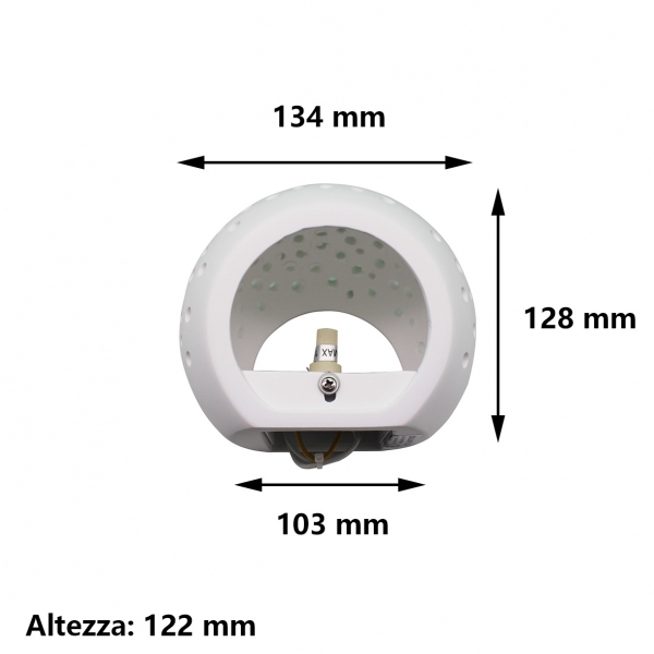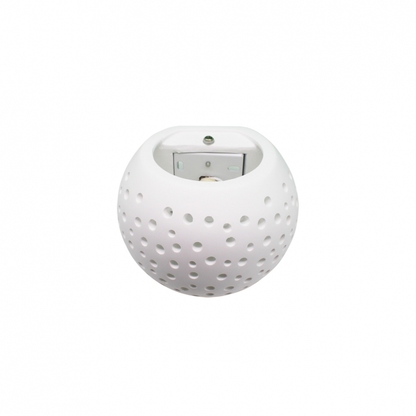 Questa applique moderna in gesso naturale unisce design e funzionalità. La sua forma a cupola è caratterizzata da piccoli fori che, una volta accesa la luce, creano un suggestivo effetto decorativo sulla parete, simile a un cielo stellato.