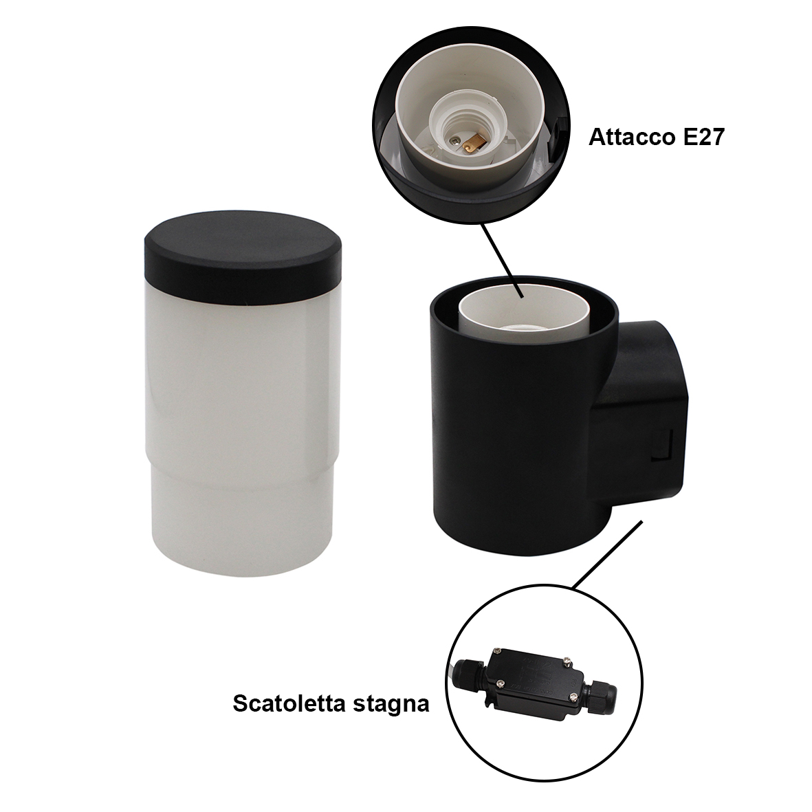 Applique a parete da esterno IP65 nera attacco grosso E27 lampadina non inclusa