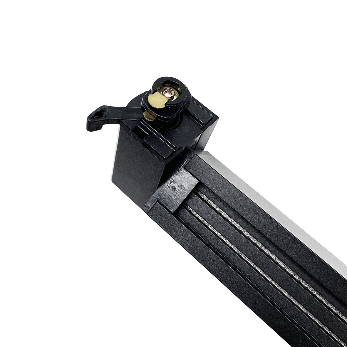 L’installazione sul binario monofase è molto semplice, è sufficiente ruotare le levette all’estremità in modo da avere i due attacchi al lineati alla barra, dopodiché inserire la barra nel binario e bloccarla con le stesse levette.
