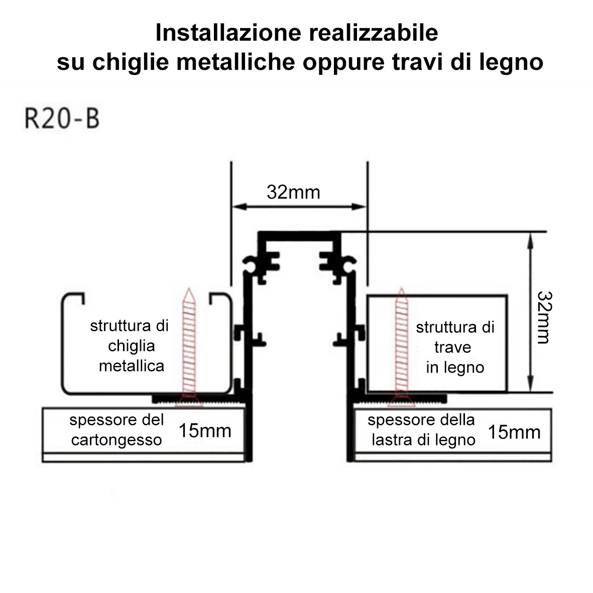 Binario Magnetico 2metri 48V ad Incasso a scomparsa installabile su cartongesso o lastre di legno