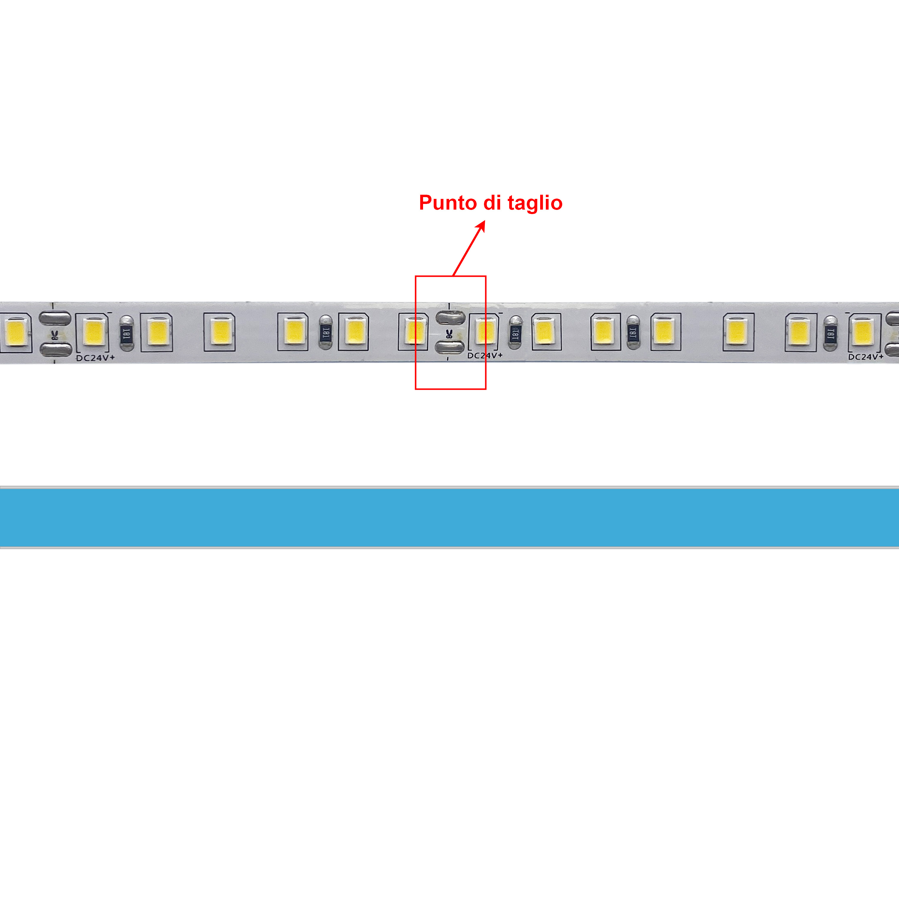 Questa striscia può essere tagliata ad ogni 5 cm (ogni 6 led), nei punti adibiti al taglio, ossia dove troverete il simbolo delle forbici. Inoltre, sul retro della striscia possiede il biadesivo, che lo permette di attaccarsi facilmente su tante superfici, preferibilmente quelle metalliche per dissipare il calore.