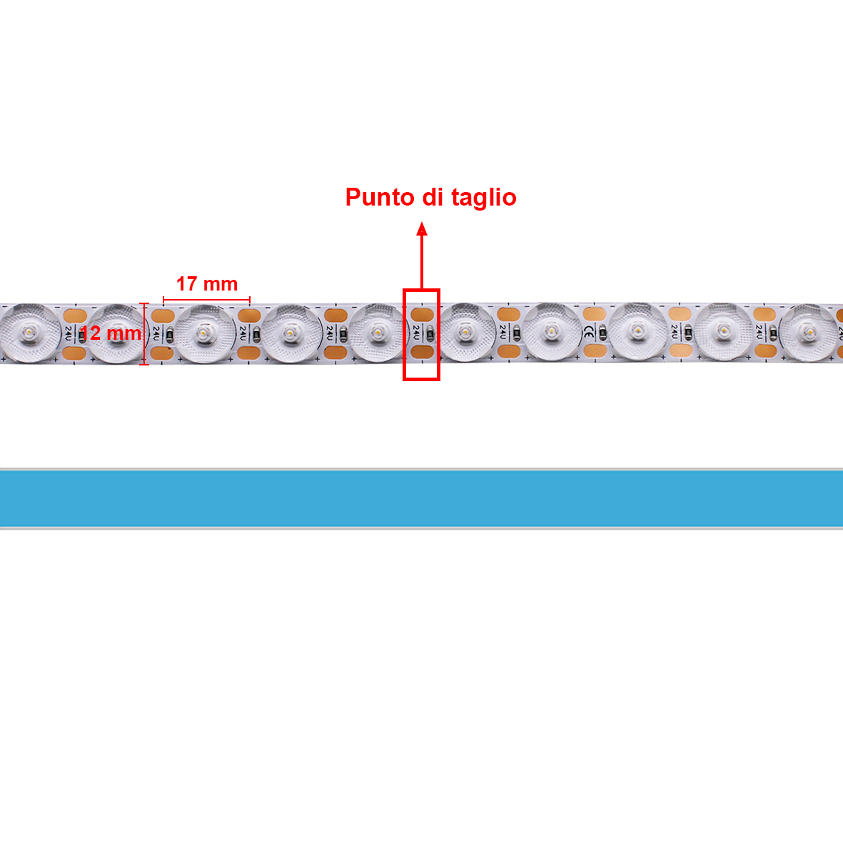 Questa striscia può essere tagliata ad ogni 1.6 cm (ogni 1 led), nei punti adibiti al taglio, ossia dove troverete le linette. Inoltre, sul retro della striscia possiede il biadesivo, che lo permette di attaccarsi facilmente su tante superfici, preferibilmente quelle metalliche per dissipare il calore.