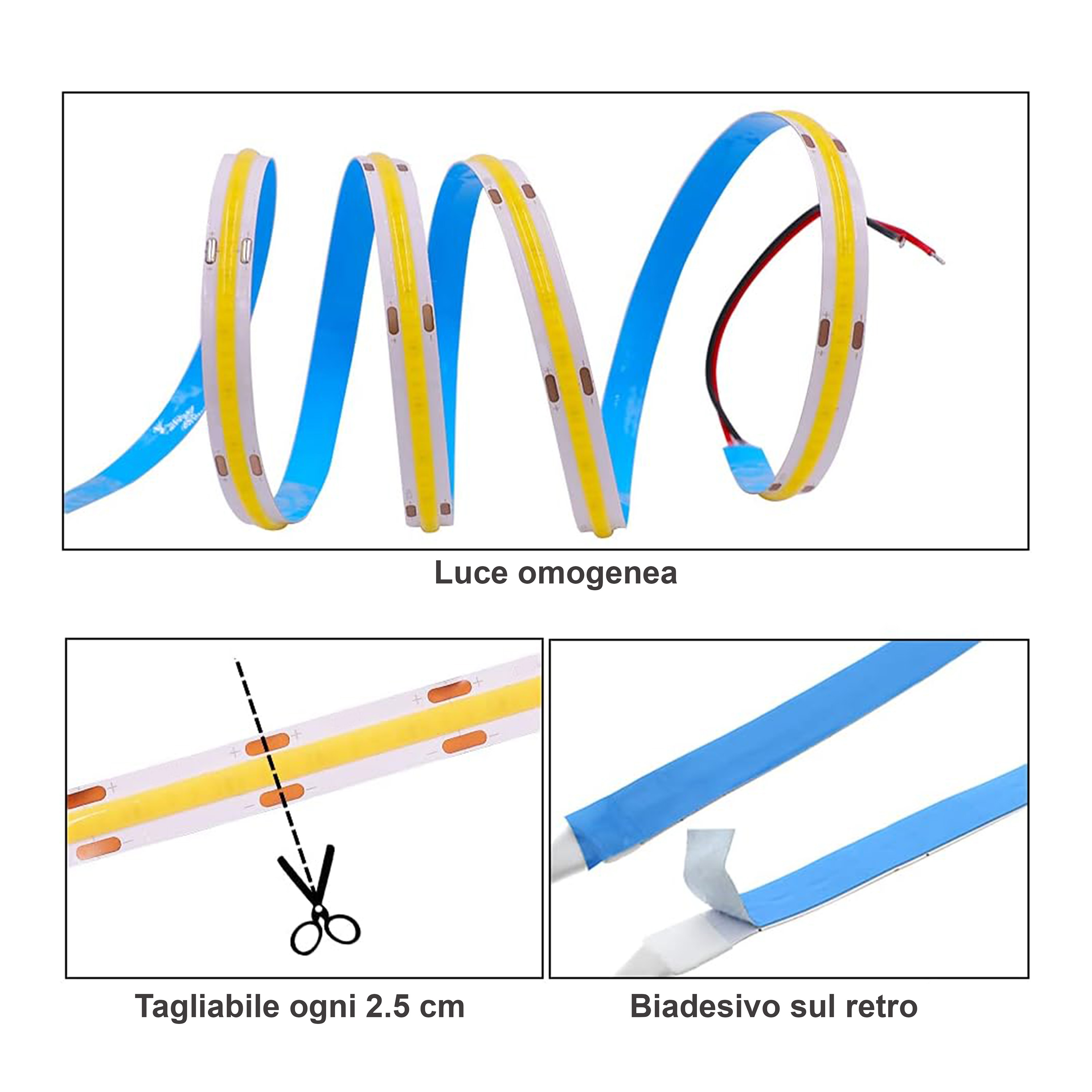 Questa striscia può essere tagliata ad ogni 2.5 cm, nei punti adibiti al taglio, ossia dove troverete una linea nera nella parte dietro della striscia led.