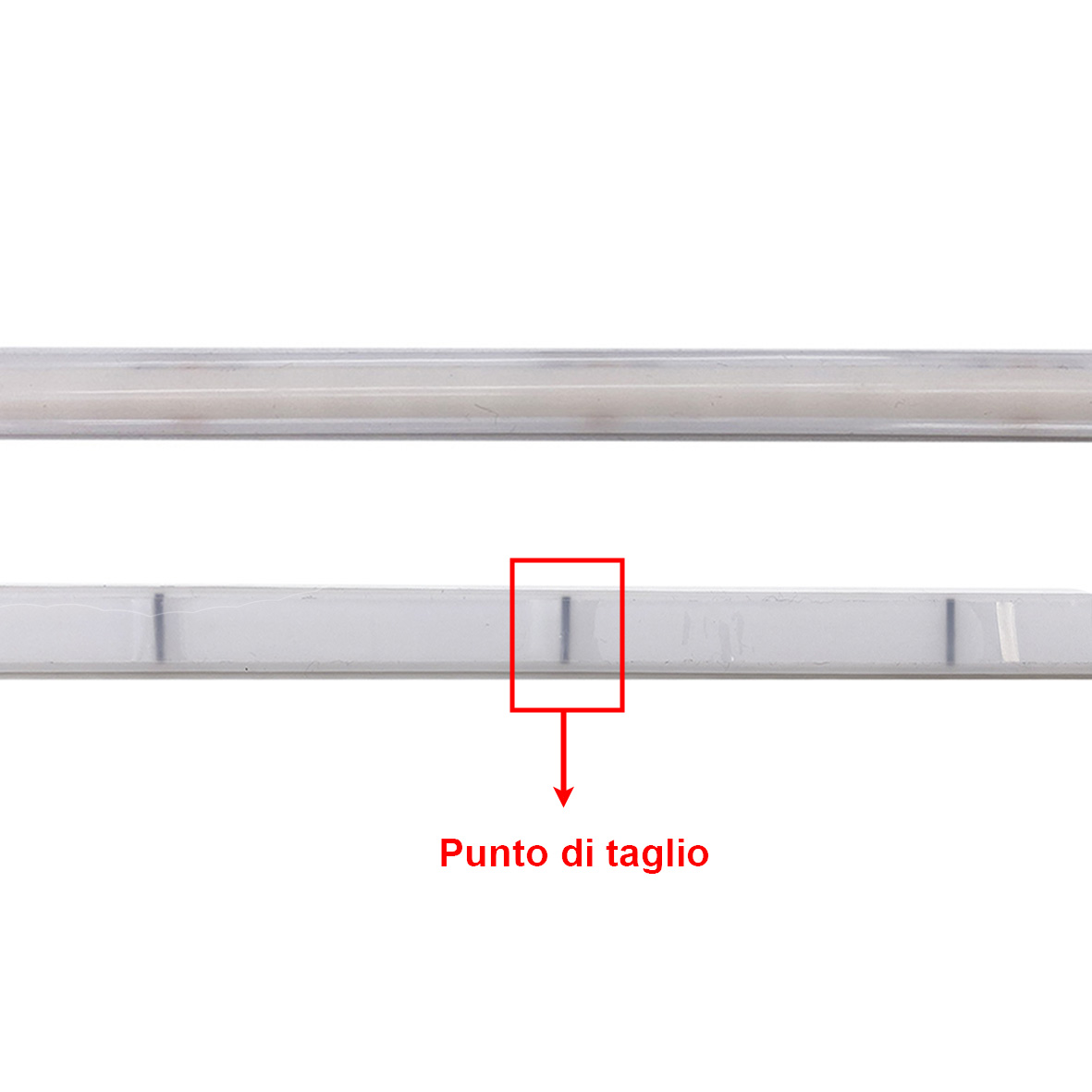 La striscia a led è ADESIVA e può essere tagliata ad ogni 5 cm, nei punti adibiti al taglio, ossia dove troverete la linea segnata.