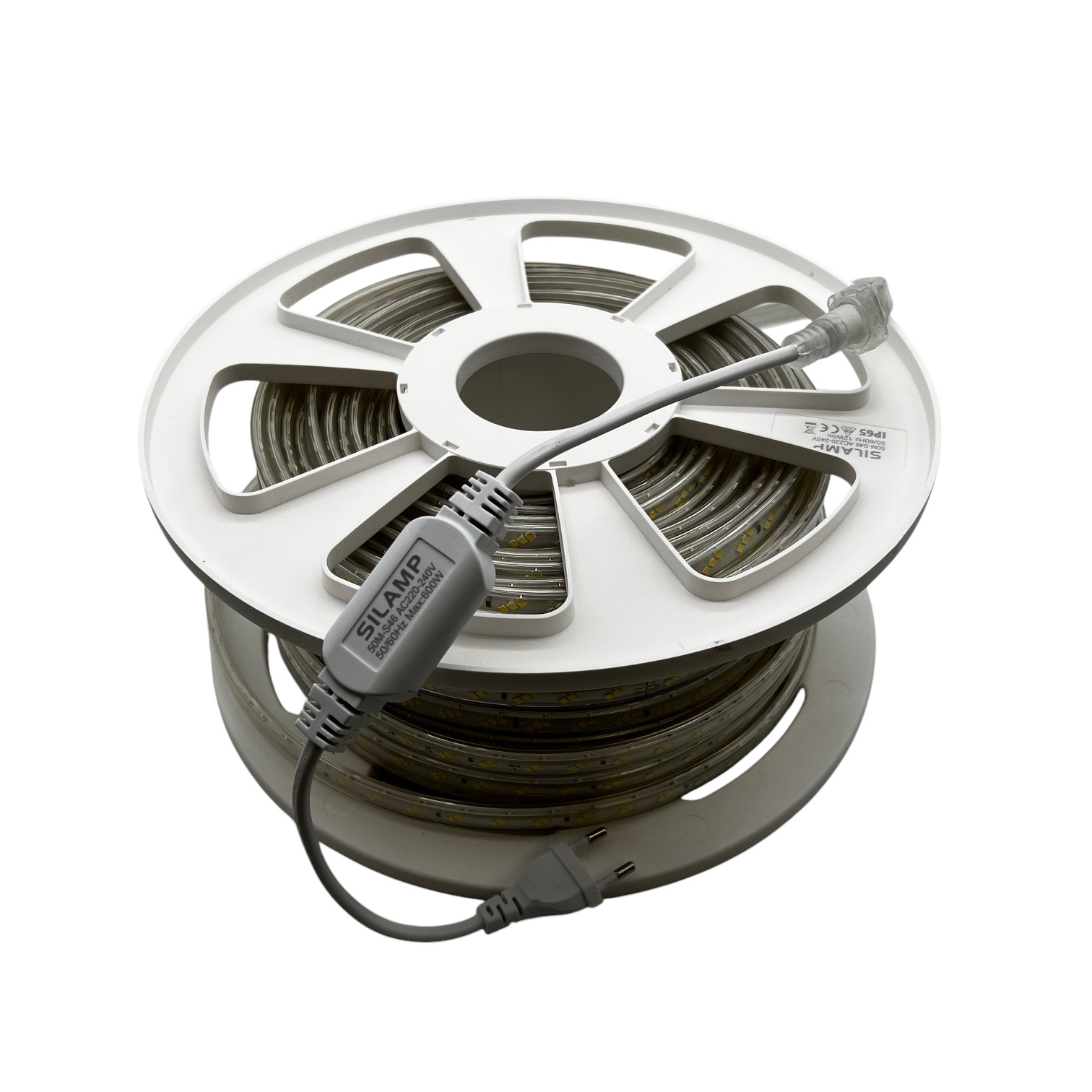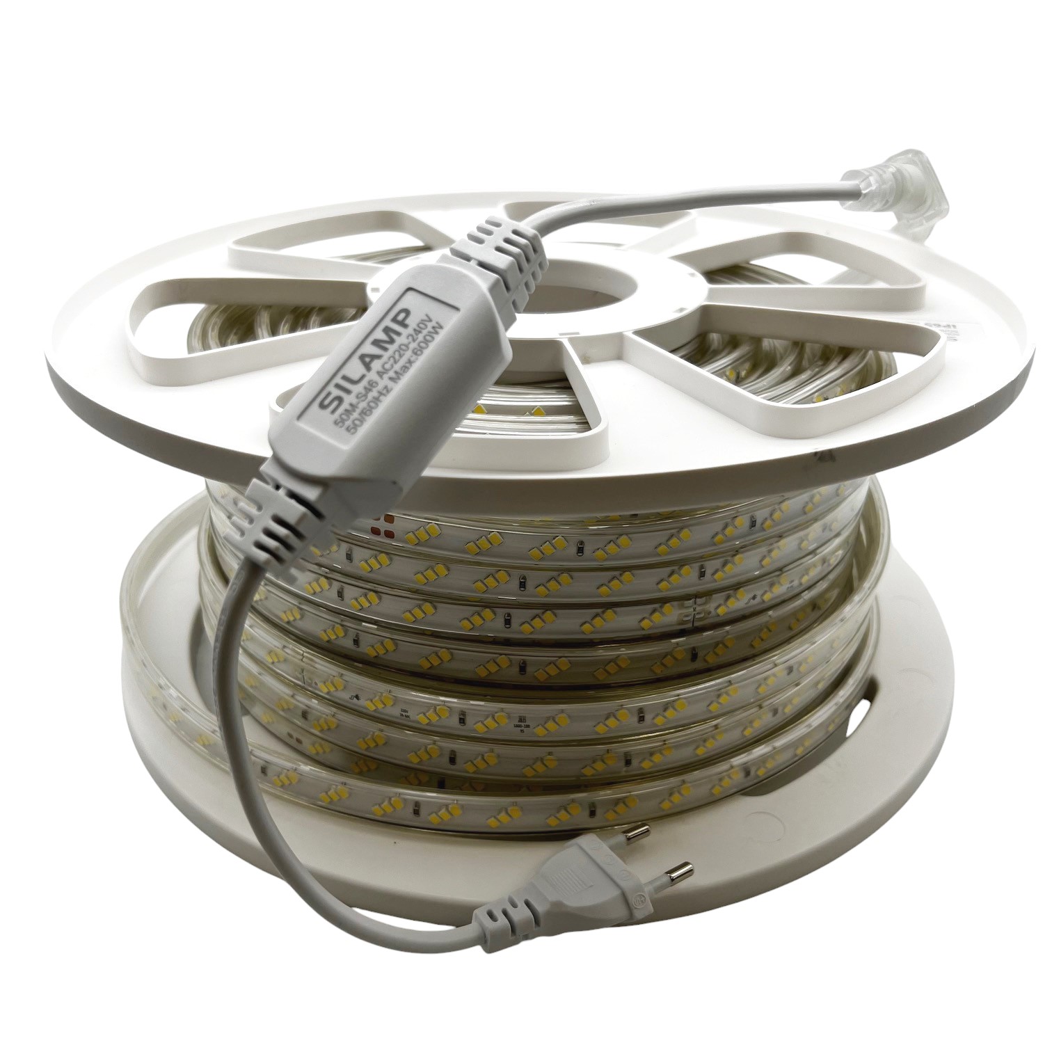 Questa striscia LED 220V può essere tagliata ad ogni 100 cm, negli spazi adibiti al taglio, ossia dove troverete le interruzioni della striscia led.