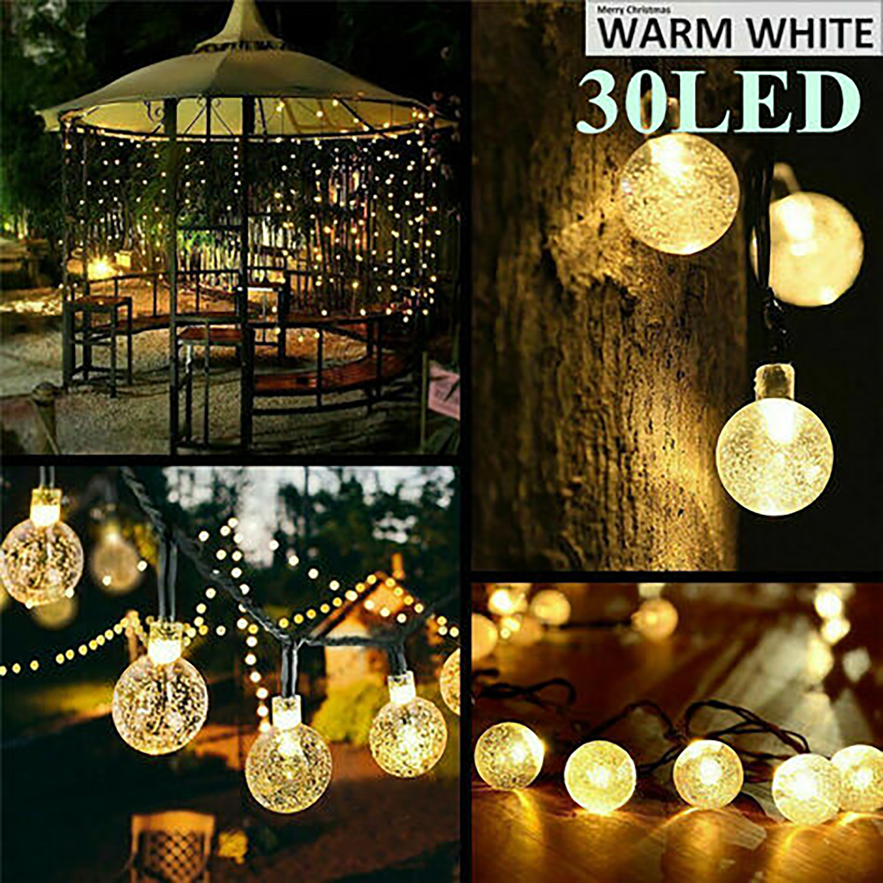 Catena Luminosa 5m 30led energia solare stringa decorativa palline globo IP65