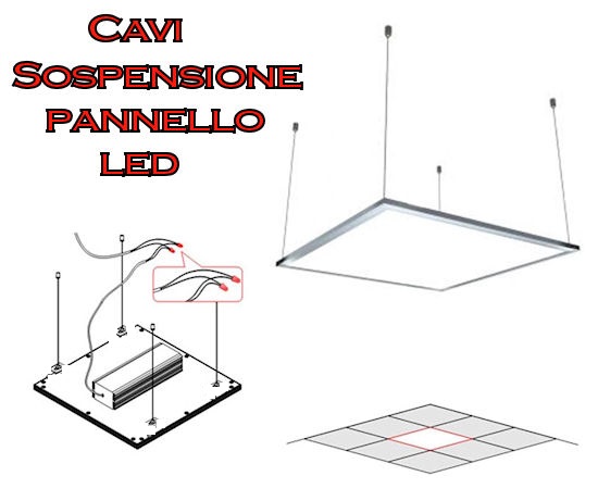 Kit professionale composto da 4 cavi di acciaio con le viti compatibile con tutti i Pannelli LED Silamp 60x60 cm 120x30 cm, Palfoniere e adattabili anche per i Binari Monofase.