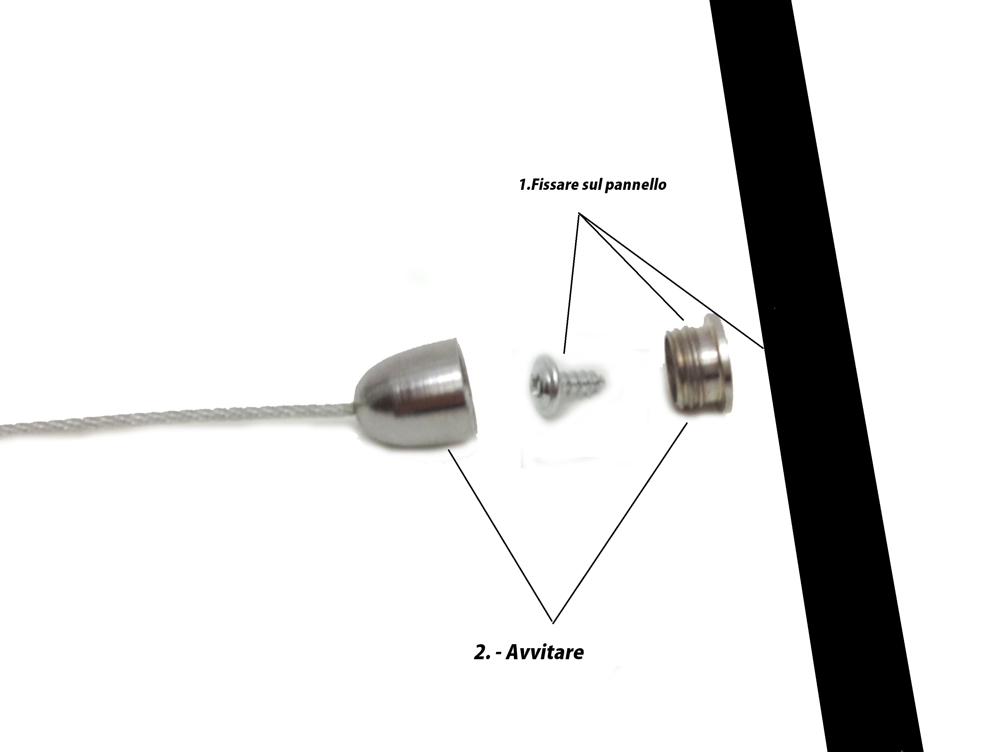 Kit professionale composto da 4 cavi di acciaio con le viti compatibile con tutti i Pannelli LED Silamp 60x60 cm 120x30 cm, Palfoniere e adattabili anche per i Binari Monofase