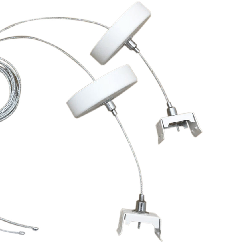 Kit professionale composto da 2 cavi di acciaio con le viti, perfetti per l'installazione a sospensione dei binari LED TRIFASE.