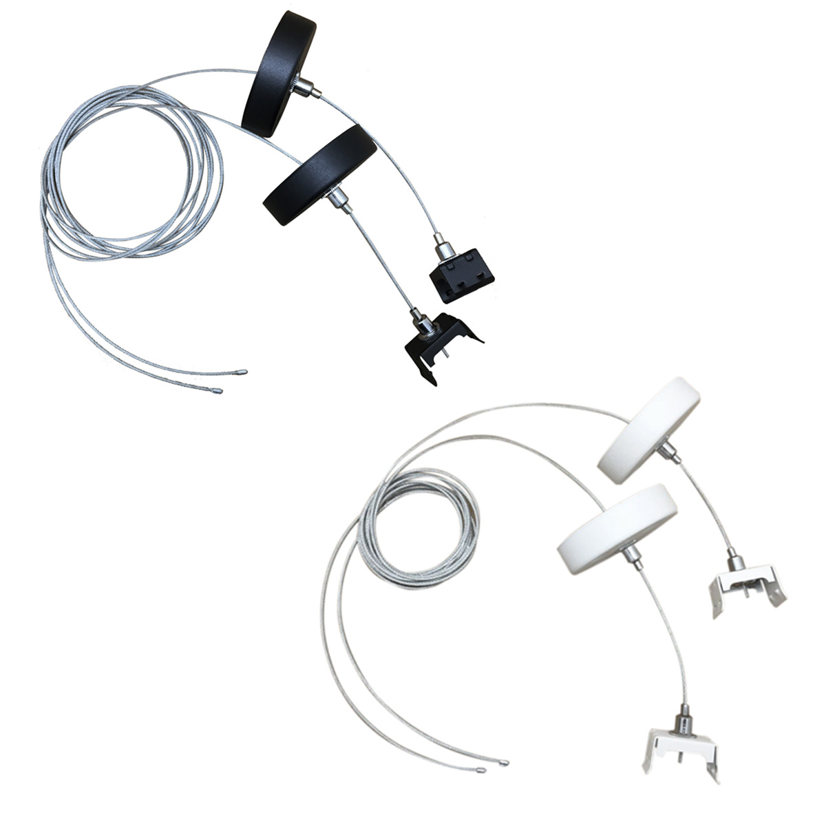 Kit professionale composto da 2 cavi di acciaio con le viti, perfetti per l'installazione a sospensione dei binari LED TRIFASE.