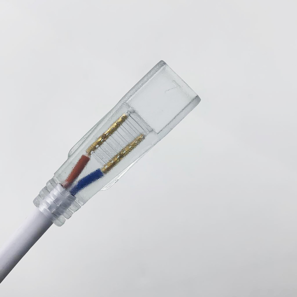 Il connettore è utile per collegare IN SERIE una striscia a un'altra, ma è SCONSIGLIATO collegarlo direttamente a corrente diretta 220 volt, perchè potrebbe esserci un calo di tensione.