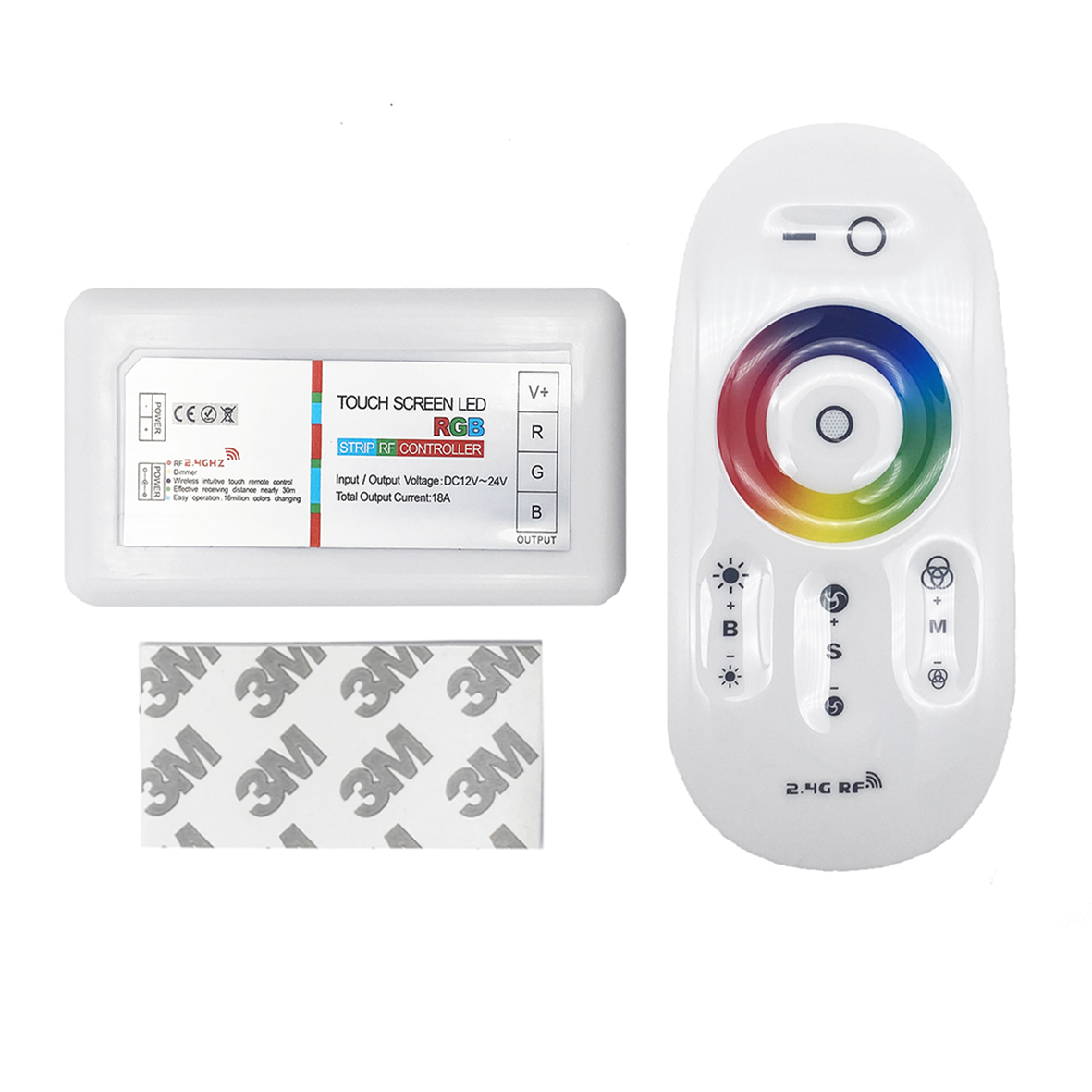Il telecomando dispone di una ruota di 64 milioni di colori, essendo un telecomando su radiofrequenza (RF), non è necessario puntare il telecomando verso la centralina, ma funziona in qualsiasi punto, ad una distanza di 30 metri.