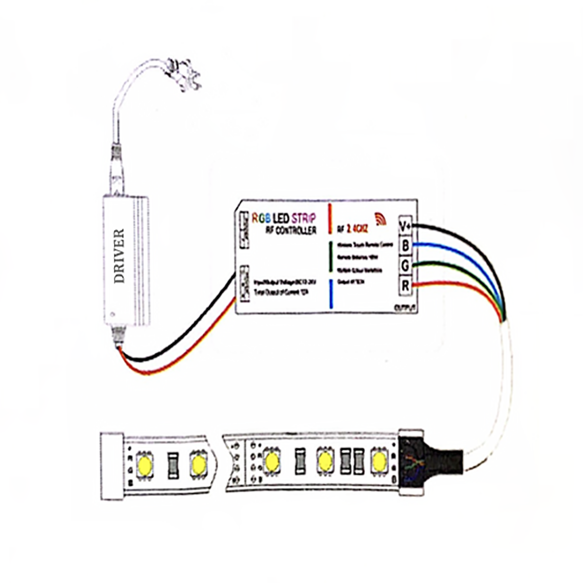 Il telecomando dispone di una ruota di 64 milioni di colori, essendo un telecomando su radiofrequenza (RF), non è necessario puntare il telecomando verso la centralina, ma funziona in qualsiasi punto, ad una distanza di 30 metri.