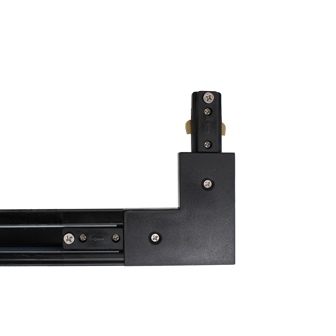 Il Connettore Angolare NERO per Binario Monofase permette di collegare due binari a L con un angolo di 90º .