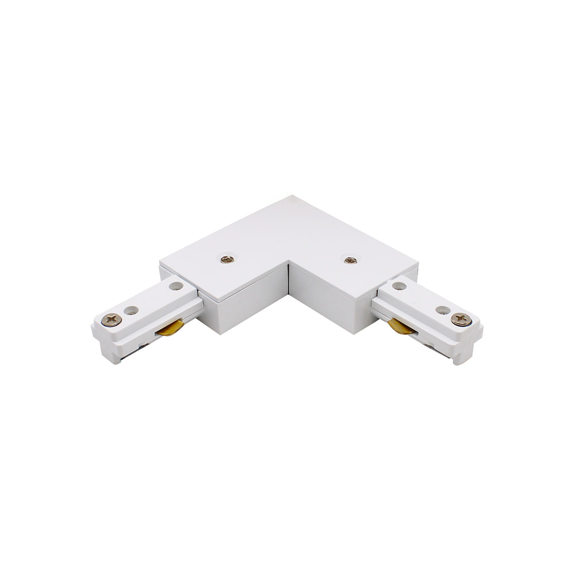 Il connettore ANGOLARE BIANCO per Binari Monofase è l'elemento base di unione tra più pezzi, con questo tipo di connettore possiamo collegare due o più sezioni di binari fino ad avere la lunghezza desiderata.