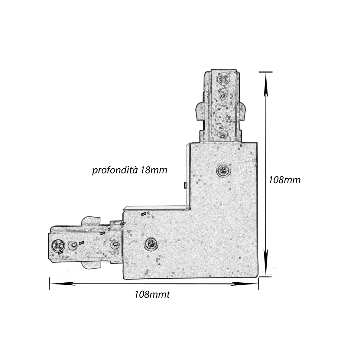 Il connettore ANGOLARE BIANCO per Binari Monofase è l'elemento base di unione tra più pezzi, con questo tipo di connettore possiamo collegare due o più sezioni di binari fino ad avere la lunghezza desiderata.
