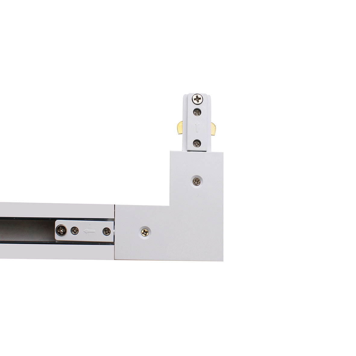 Il connettore ANGOLARE BIANCO per Binari Monofase è l'elemento base di unione tra più pezzi, con questo tipo di connettore possiamo collegare due o più sezioni di binari fino ad avere la lunghezza desiderata.