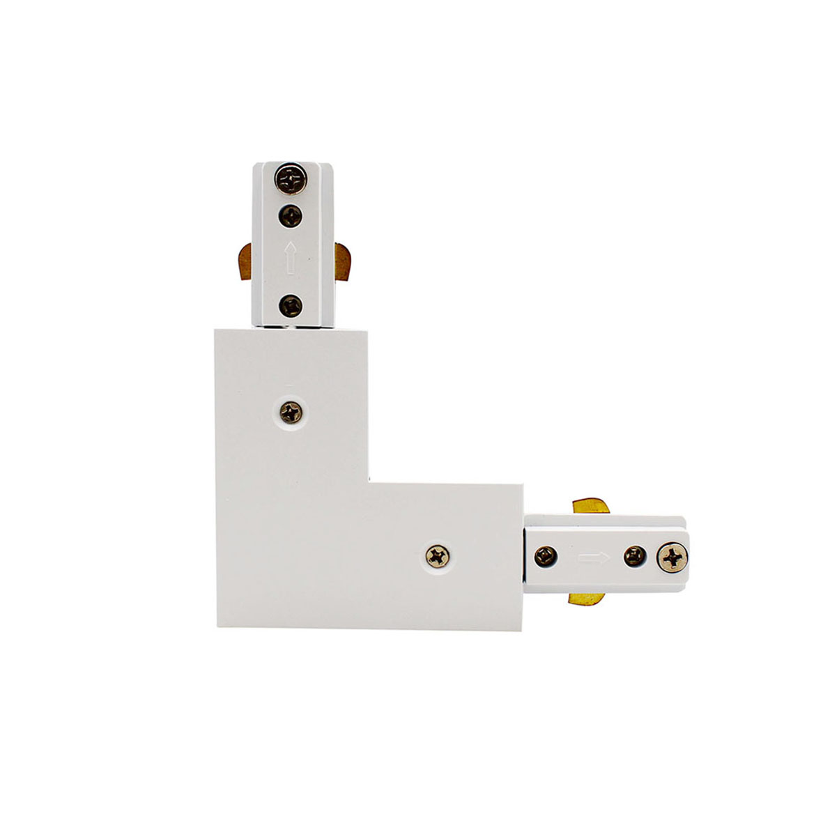 Il connettore ANGOLARE BIANCO per Binari Monofase è l'elemento base di unione tra più pezzi, con questo tipo di connettore possiamo collegare due o più sezioni di binari fino ad avere la lunghezza desiderata.