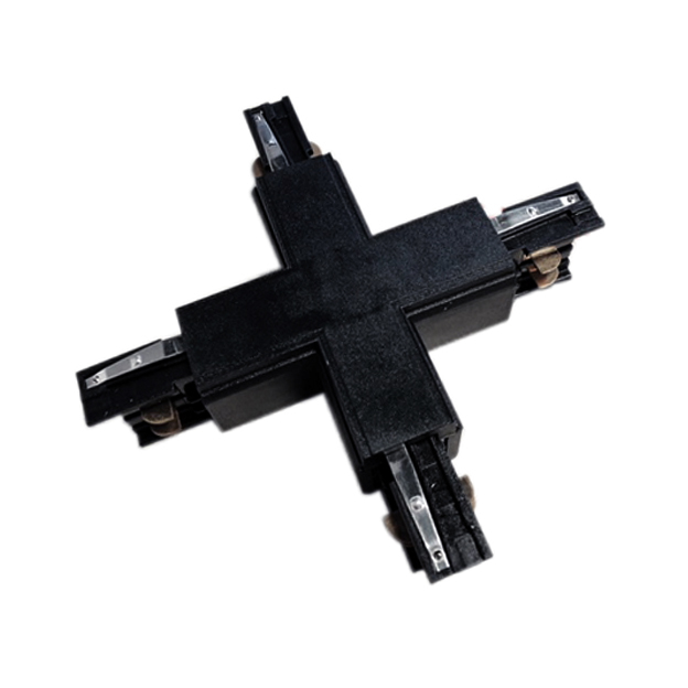 Il Connettore BIANCO o NERO Trifase angolare A24 permette di unire a X fino a quattro binari TRIFASE, per quattro differenti direzioni (su, giù, destra e sinistra).