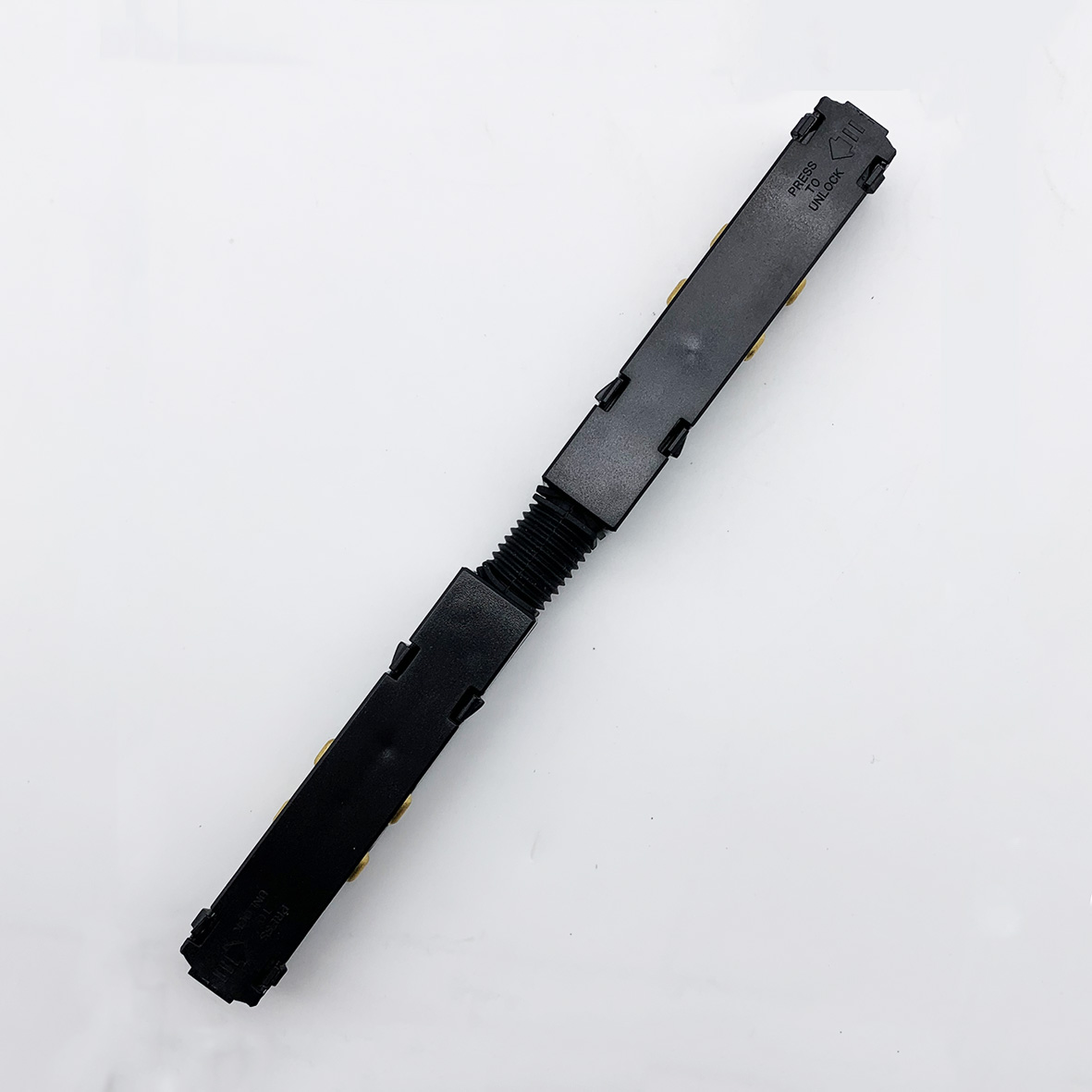 Questa giunzione snodabile è realizzata appositamente per collegare due binari magnetici, infatti mediante questo accessorio sarà possiible portare la tensione di corrente 48 volt DC da un binario all'altro.