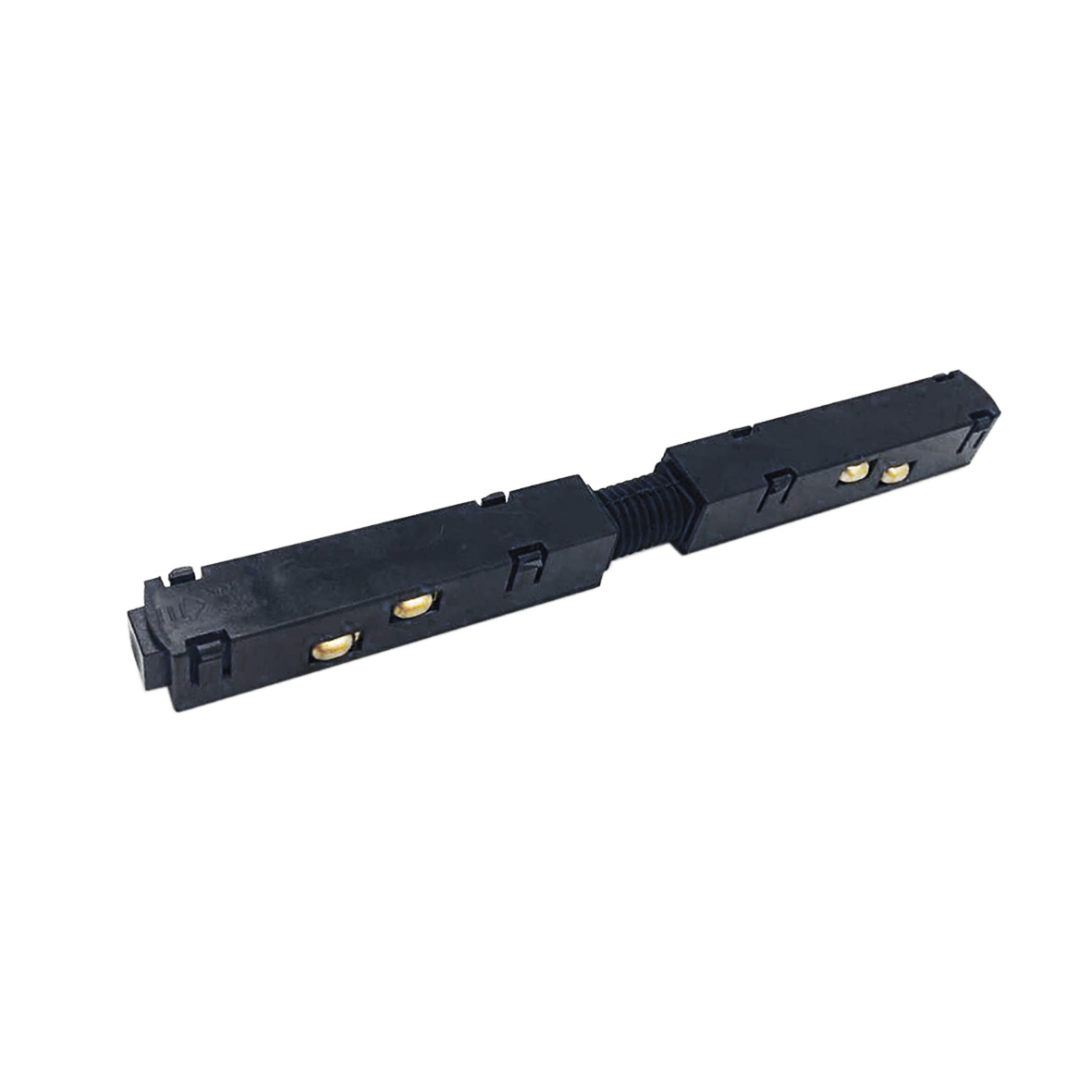 Questa giunzione snodabile è realizzata appositamente per collegare due binari magnetici, infatti mediante questo accessorio sarà possiible portare la tensione di corrente 48 volt DC da un binario all'altro.