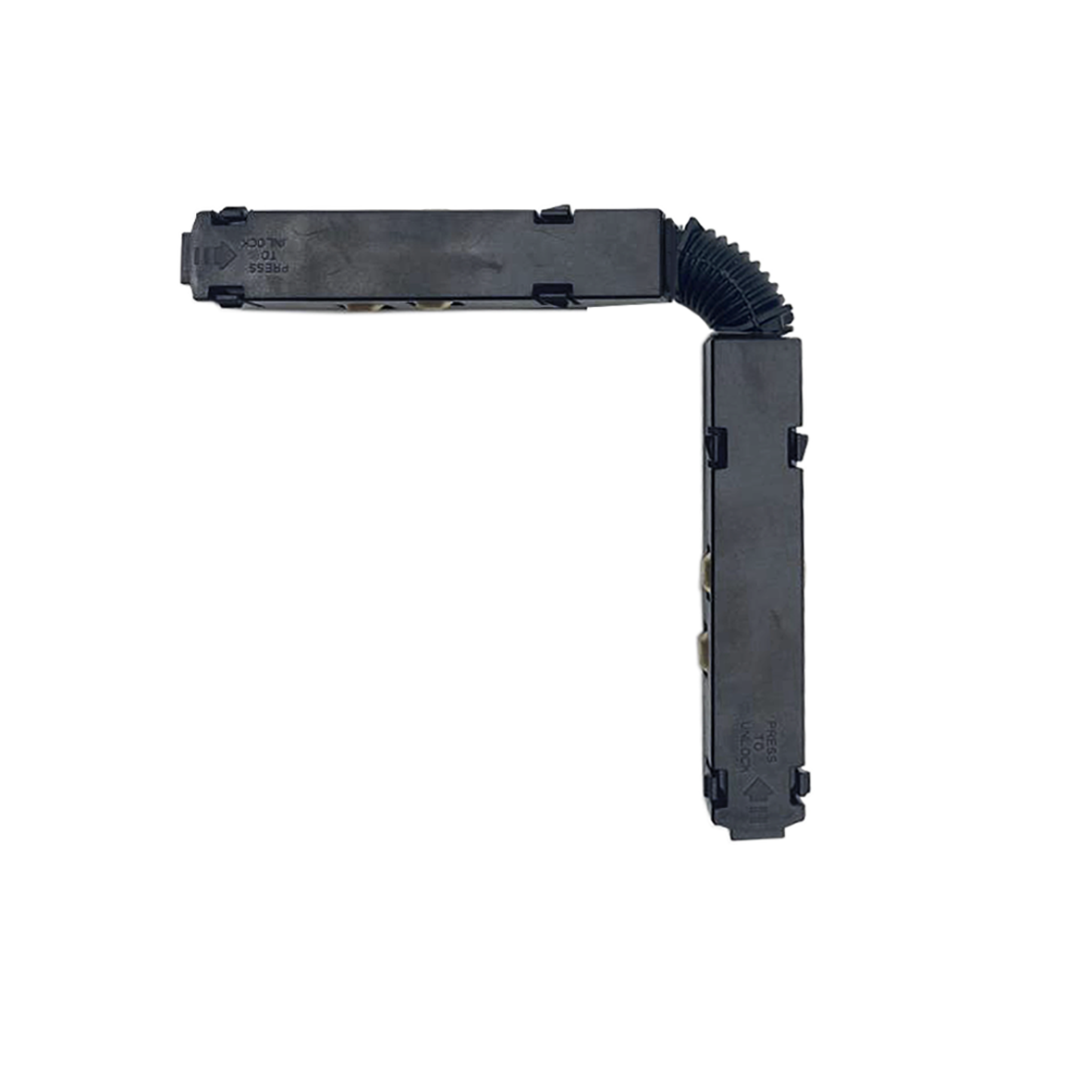 Questa giunzione snodabile è realizzata appositamente per collegare due binari magnetici, infatti mediante questo accessorio sarà possiible portare la tensione di corrente 48 volt DC da un binario all'altro.