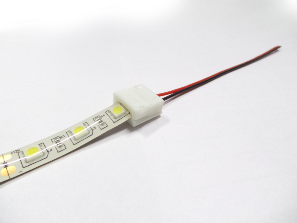 Il Connettore Spinotto Doppio prolunga 12v/24v per striscia led SMD 5050 è adatto per le strisce che hanno un massimo di 60 led al metro