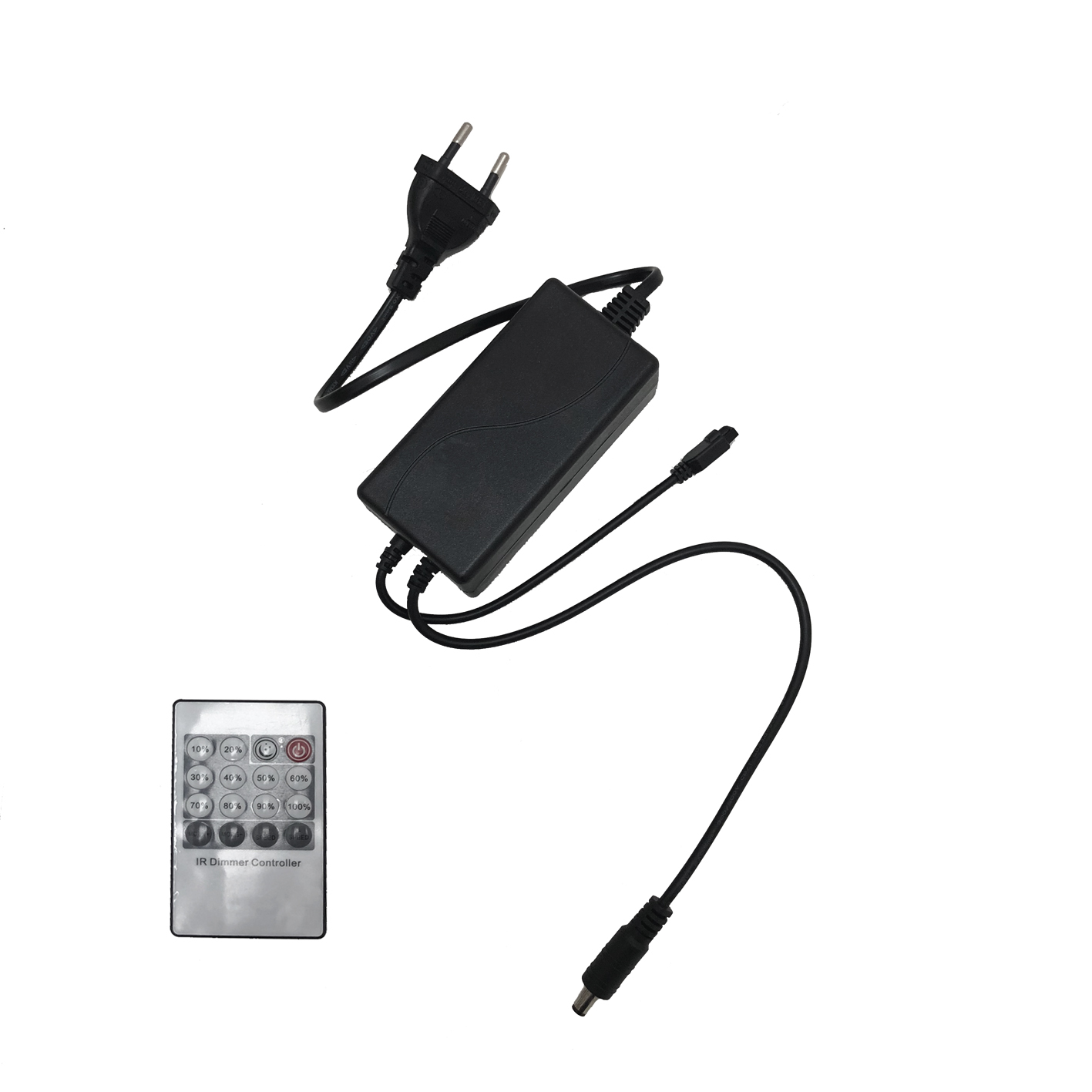 Non è necessario alcun alimentatore: il controller si collega direttamente alla corrente 220v e con uscita a 12v DC , basta collegare il connettore maschio con jack standard alla striscia LED.