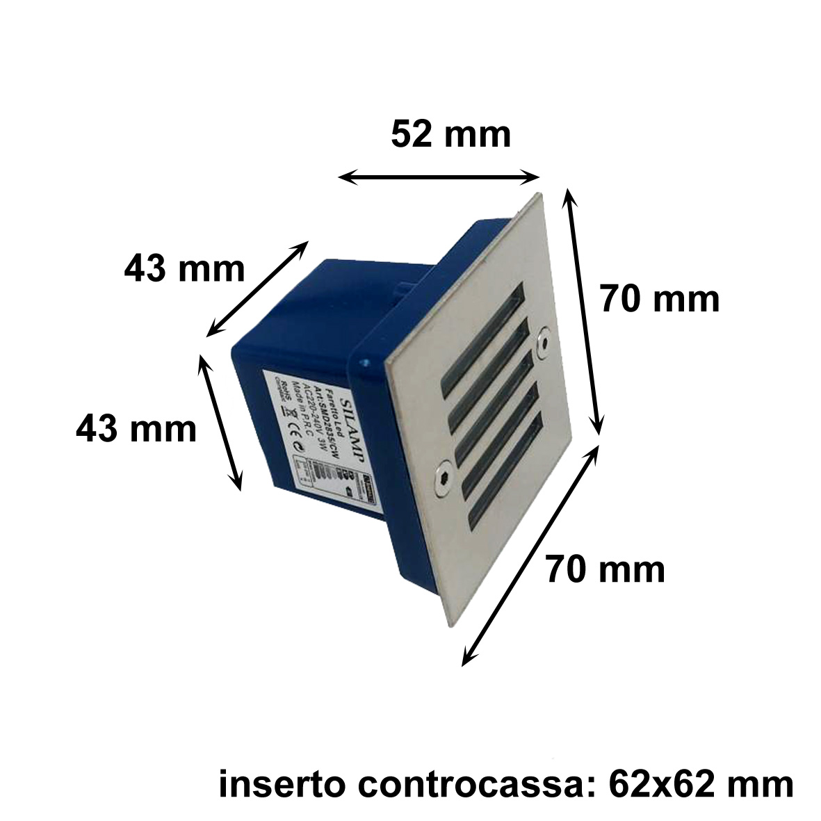 Faretto incasso Segnapasso LED 3w quadrato da parete smd2835 F87-3W