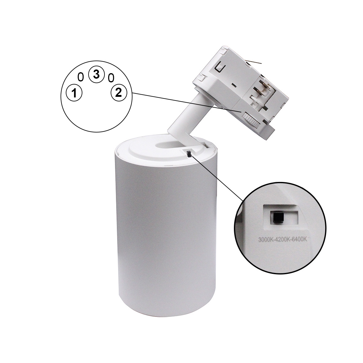 Faretto LED 30W Binario Trifase Bianco con Switch CCT 3 colori Selezionabile