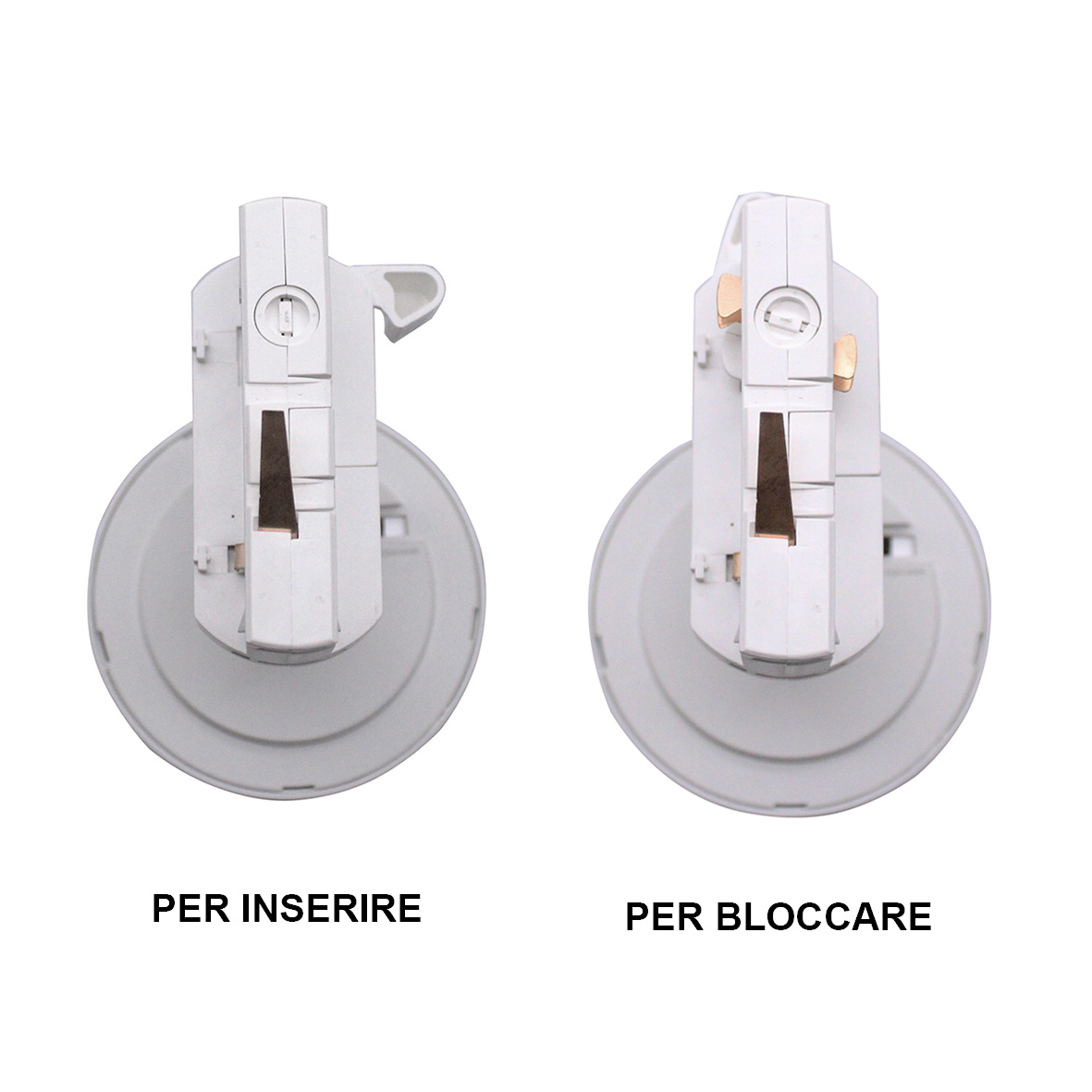 L’innovativo sistema manuale del faretto, permette di orientarlo e di ruotarlo fino a 320° in direzione orizzontale e fino a 90° in direzione verticale. Inoltre, dispone di un facile aggancio manuale che permette, in modo semplice, di inserire, rimuovere o posizionare a piacere il prodotto sul binario.