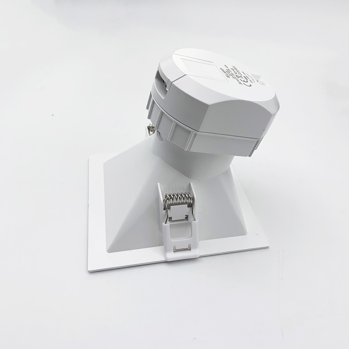 Il faretto in questione è composto da: faretto compatto con switch integrato e la ghiera bianca quadrata , montabile a incastro. La ghiera avendo un'inclinazione di 60° crearà un fascio di luce direzionato.