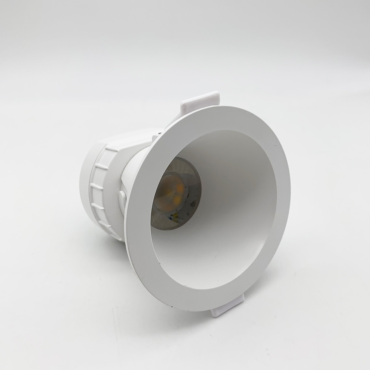Il faretto in questione è composto da: faretto compatto con switch integrato e la ghiera bianca rotonda, montabile a incastro.