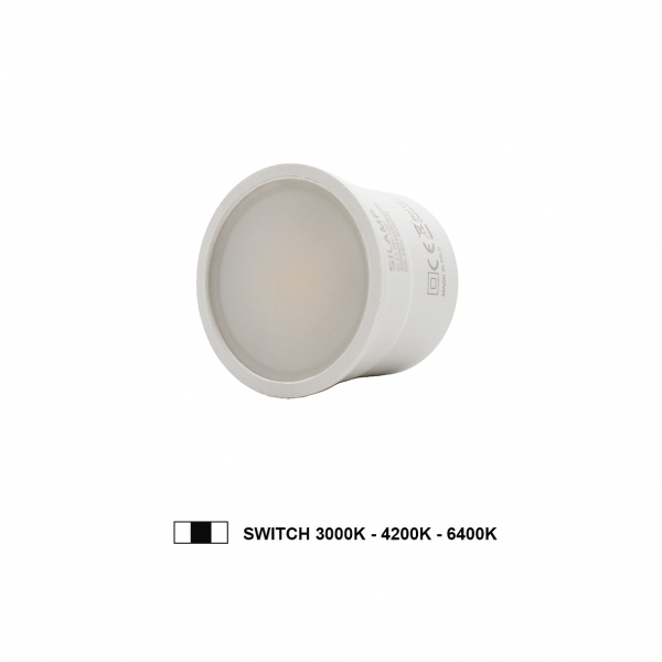 Lo switch integrato consente la selezione della temperatura colore tra 3000K, 4200K e 6400K, adattandosi a diverse esigenze luminose con un unico prodotto.