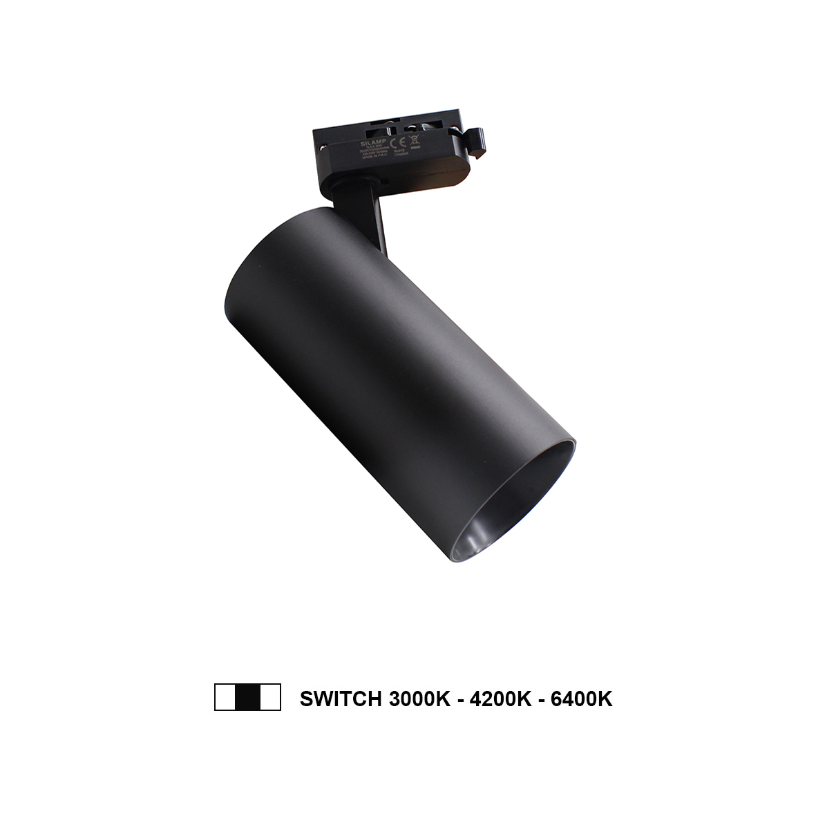 FARETTO LED A BINARIO MONOFASE 30W 220V NERO LUCE SWITCH 3000K-4200K-6400K