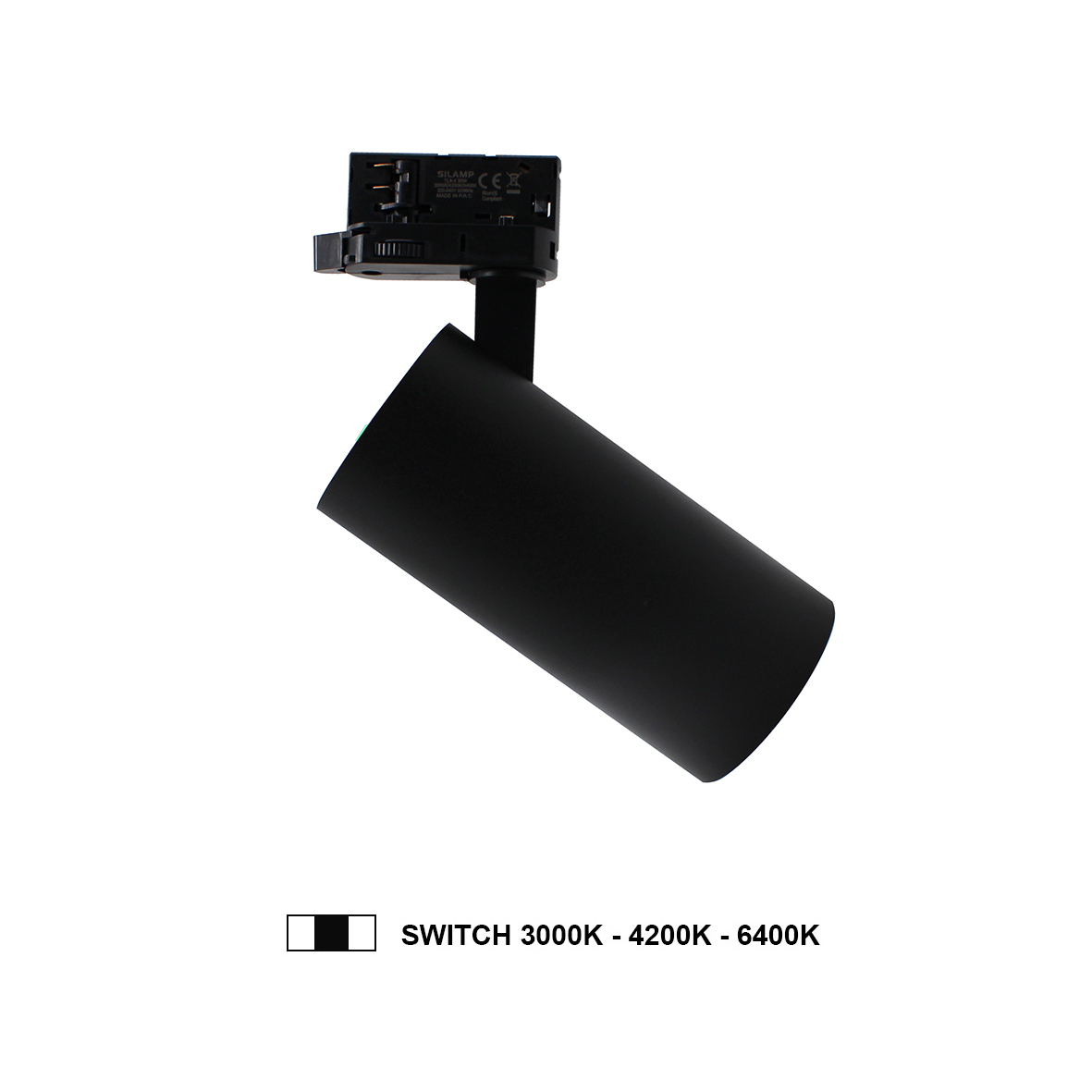 FARETTO LED A BINARIO TRIFASE 30W 220V NERO LUCE SWITCH 3000K-4200K-6400K