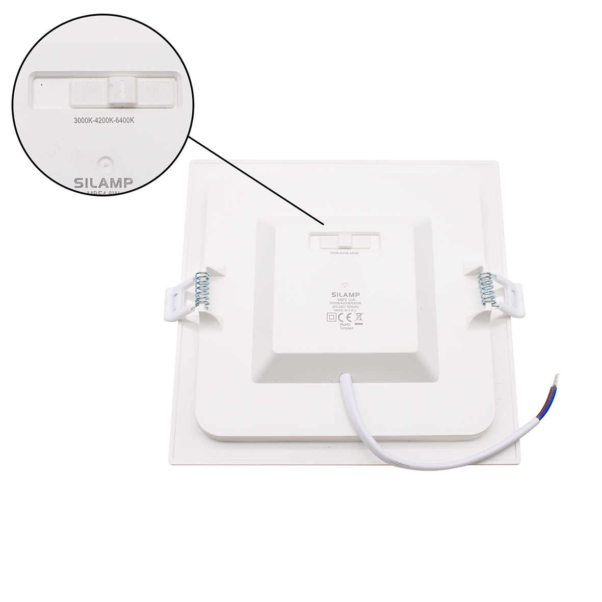 • Temperatura colore regolabile: 3000K / 4000K / 6400K selezionabile tramite switch integrato