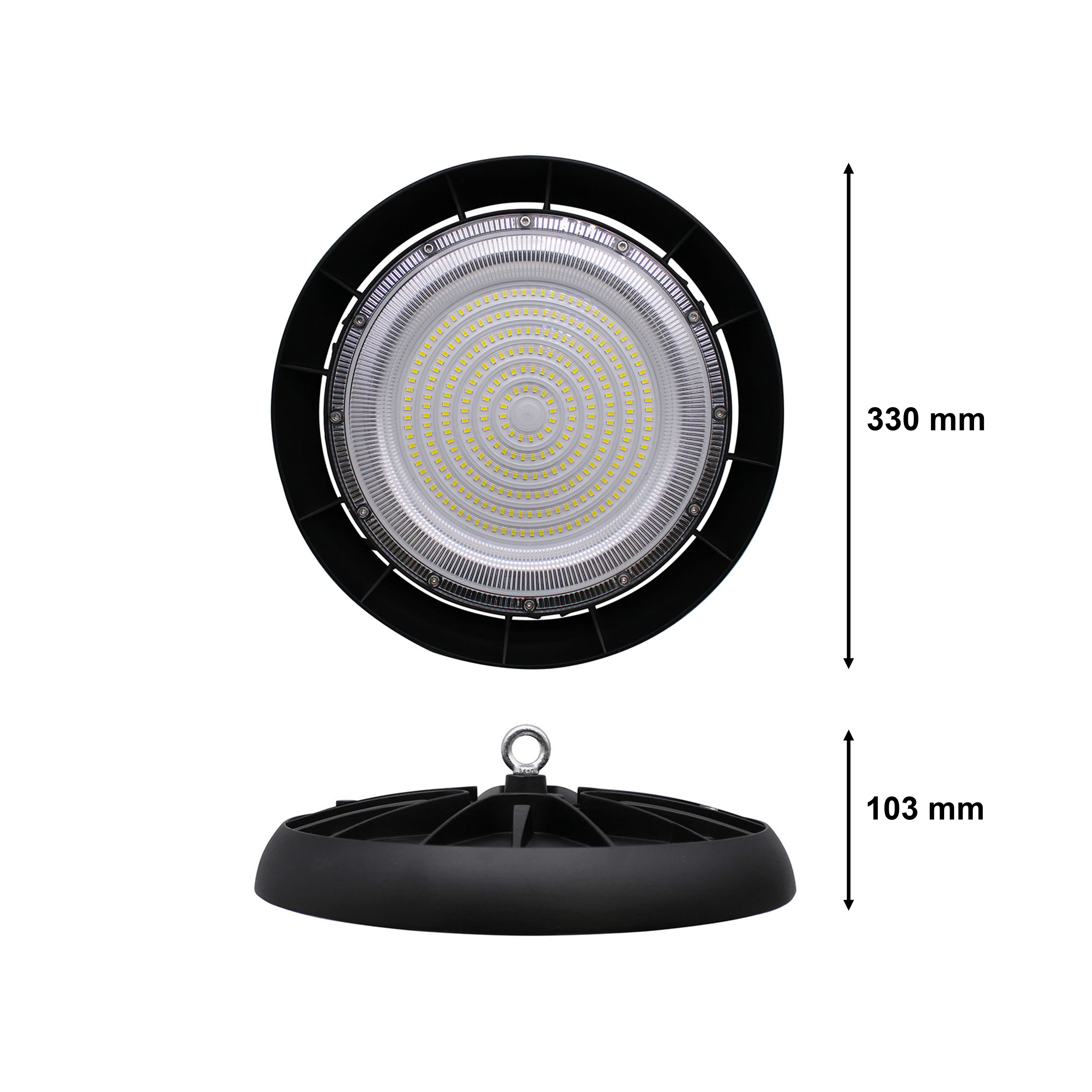 Applicazioni: officine, magazzini, capannoni industriali, supermercati, parcheggi sotterranei, stabilimenti, grandi magazzini, distributori di benzina, centri sportivi, fabbriche, espositive, palestre e altri luoghi con soffitti particolarmente elevati, dove è necessaria un'illuminazione di qualità per migliorare il comfort visivo e la sicurezza sul lavoro.