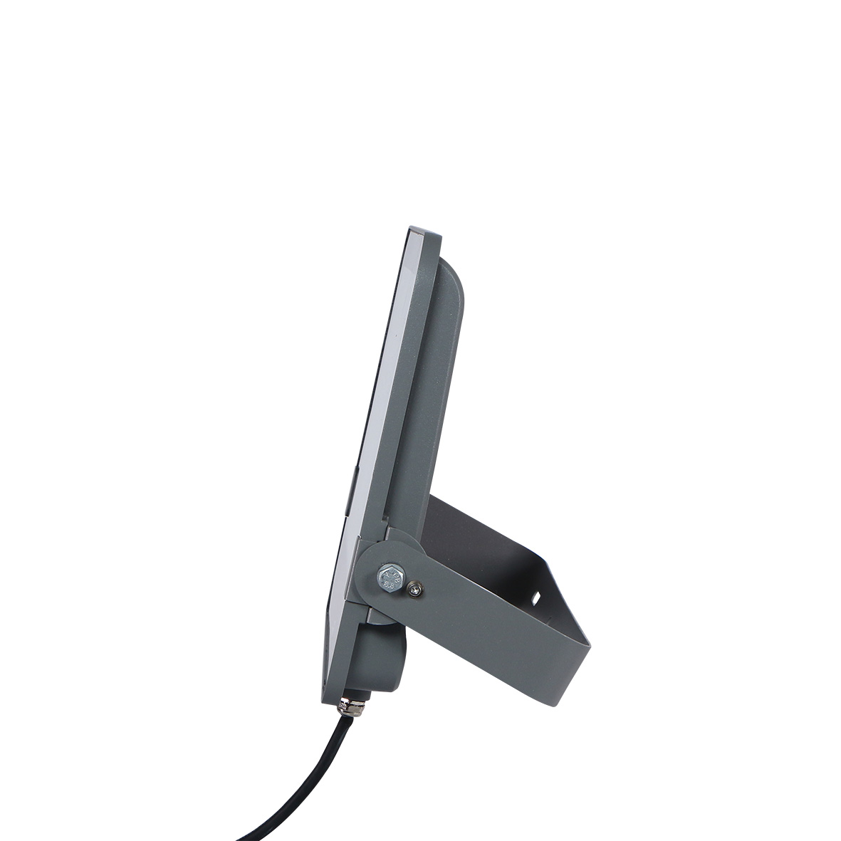 Staffa Regolabile: Sul retro è visibile la staffa metallica a "U" che permette di inclinare il proiettore per orientare il fascio di luce secondo le necessità e fissarlo a pareti, soffitti o pali.