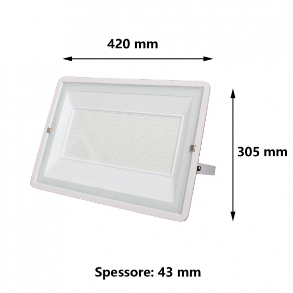 Il faro proiettore led da 300W, offre una luminosità di circa 30000 Lumens, equivalente a circa 3000W di una lampada tradizionale (alogena). Il proiettore è composto da una serie di led SMD di ultima generazione ed è distribiuta in un angolo di 120°. Grazie alla sua struttura compatta e leggere permette di disperdere il calore adeguatamente, in modo da evitare l’usura rapida dei componenti.