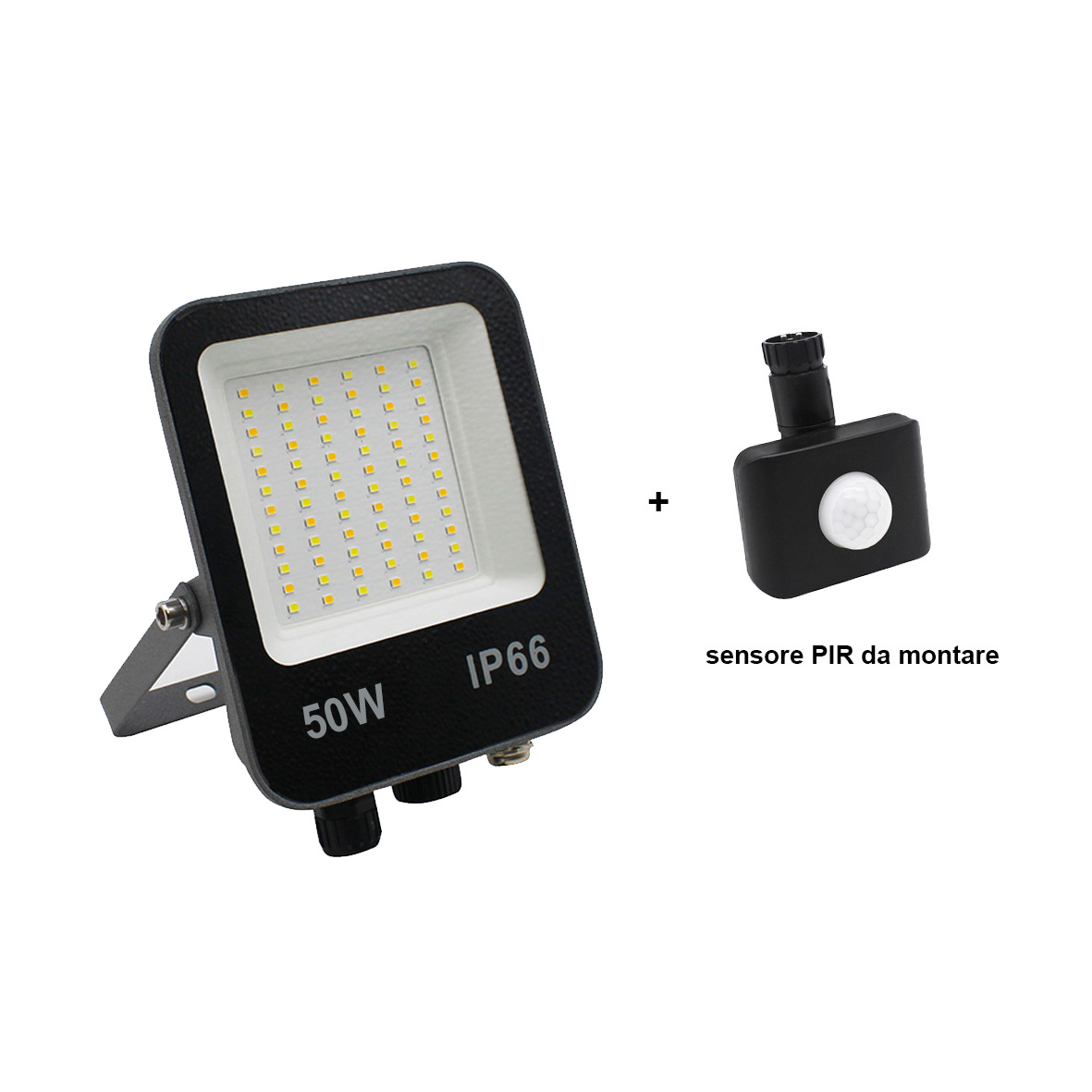 Inoltre, ciò che rende unico questo proiettore è la presenza, all'interno della confezione, di un sensore di movimento e crepuscolare (PIR) da collegare al faro. Grazie a questo sensore, il proiettore si trasforma da una fonte di luce fissa a un dispositivo che si accende e spegne automaticamente al rilevamento di un movimento.