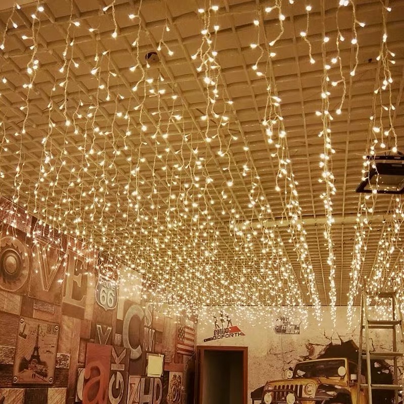 Ghirlanda LED 220V 3M a tenda 14 pendenti 140led IP44 luce Calda