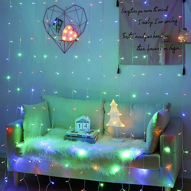 Ghirlanda LED 220V 3M a tenda 16 pendenti 320led IP44 Multicolor