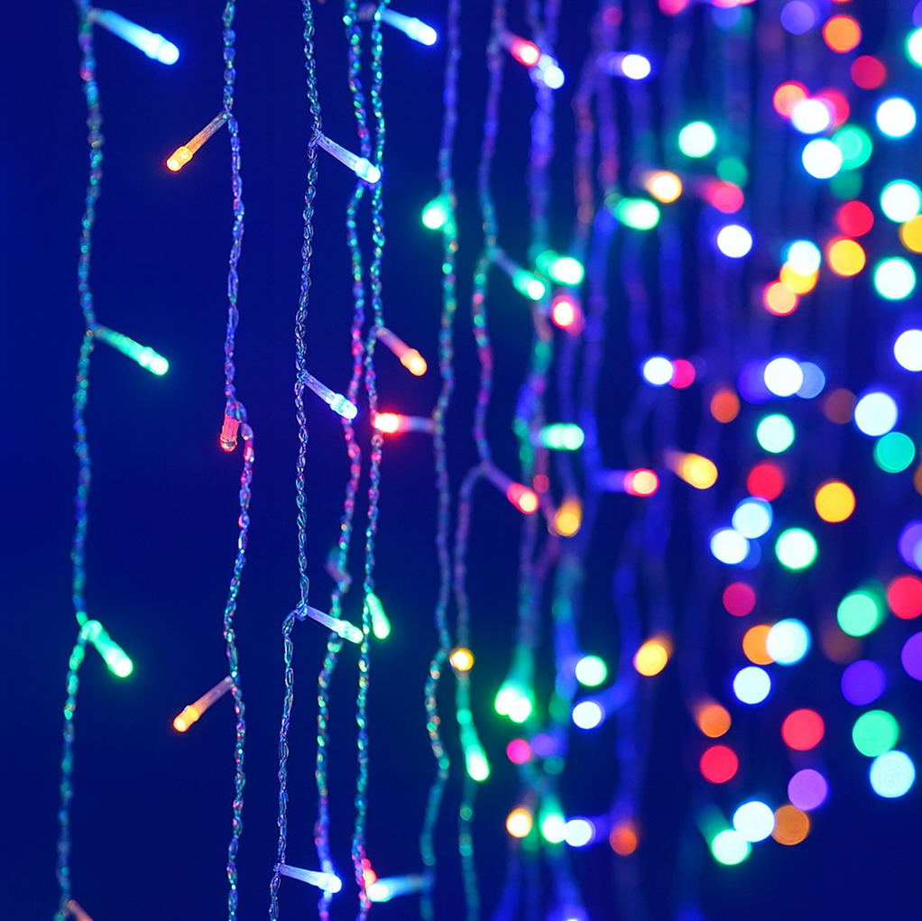 Ghirlanda LED 220V 3M a tenda 16 pendenti 320led IP44 Multicolor