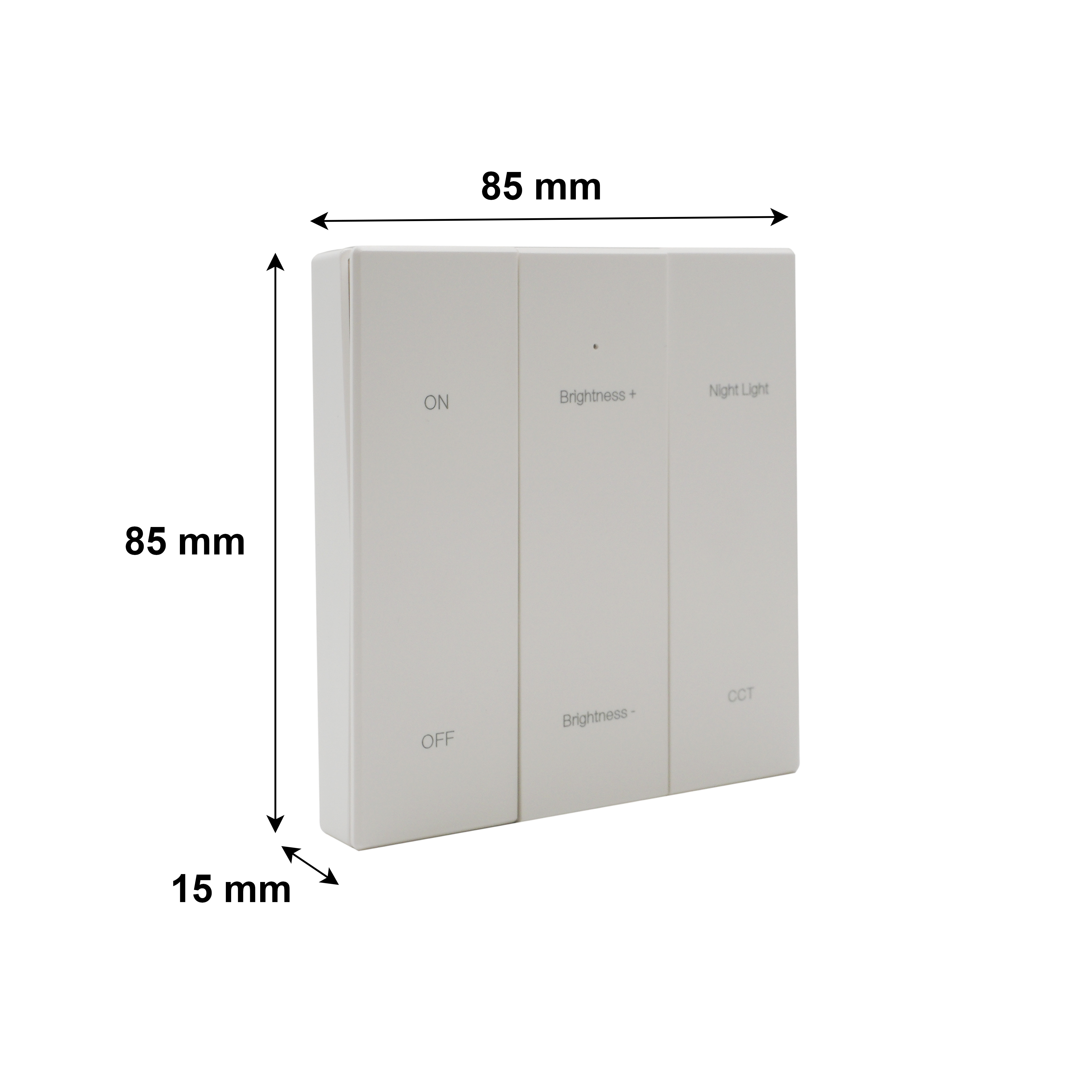 L'interruttore di controllo intelligente wireless alimentato a batteria (2 ministilo AAA 1.5V) con pulsanti meccanici, utilizza la tecnologia radiofrequenza, la quale permette all’interruttore di avere un ampio raggio di azione, fino a 30 metri di distanza.