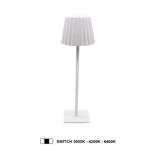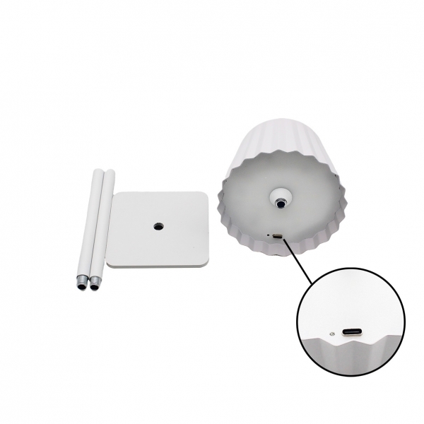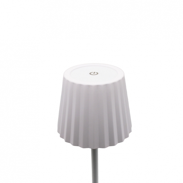 Il paralume plissettato a tronco di cono assicura una diffusione luminosa morbida e omogenea. Dotata di un modulo LED da 3W, offre un'illuminazione efficiente dal punto di vista energetico. La struttura compatta, spesso ricaricabile e cordless, la rende una soluzione ideale per illuminazione d'accento, per spazi esterni o come elegante lumetto da comodino.
