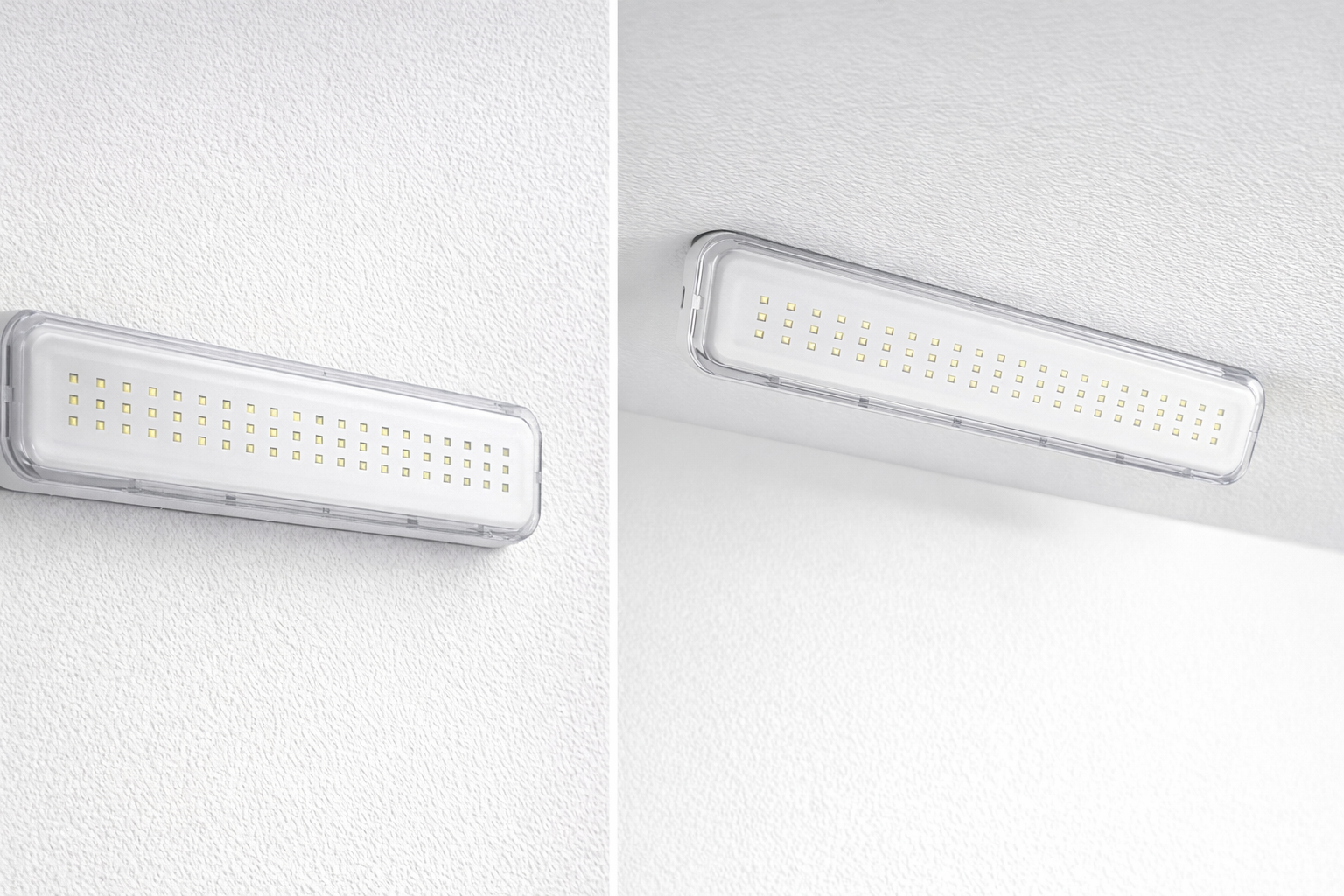 Grazie alla simmetria e all’estrema uniformità di illuminamento che la contraddistinguono, la lampada emergenza led può essere installata, senza un orientamento predefinito, a parete, a plafone e a bandiera. Il corpo in policarbonato ospita al suo interno un’ottica a doppia riflessione, che a sua volta integra due serie di LED ad elevatissima efficienza.