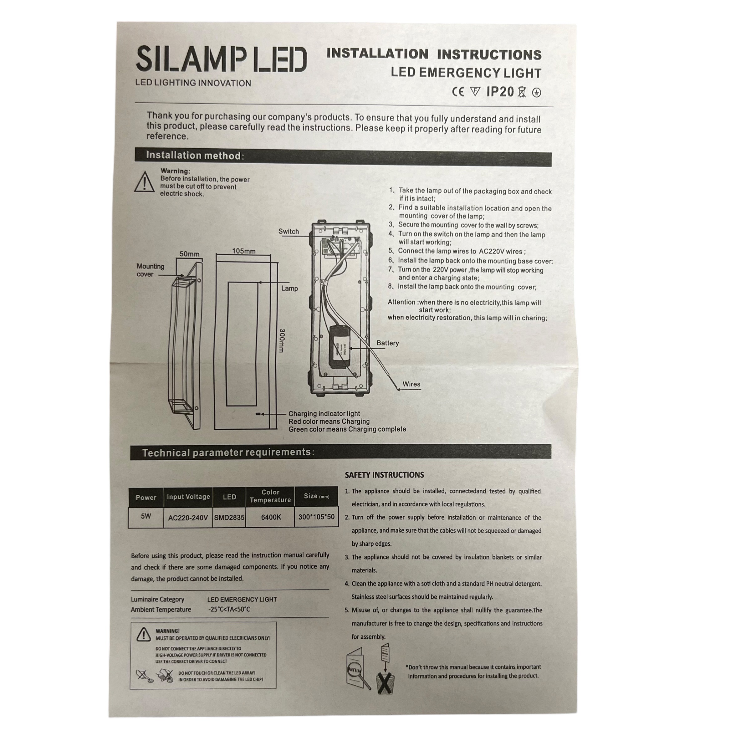 La lampada di emergenza LED 5W è progettata per garantire sicurezza, affidabilità e autonomia prolungata in caso di interruzioni di corrente.