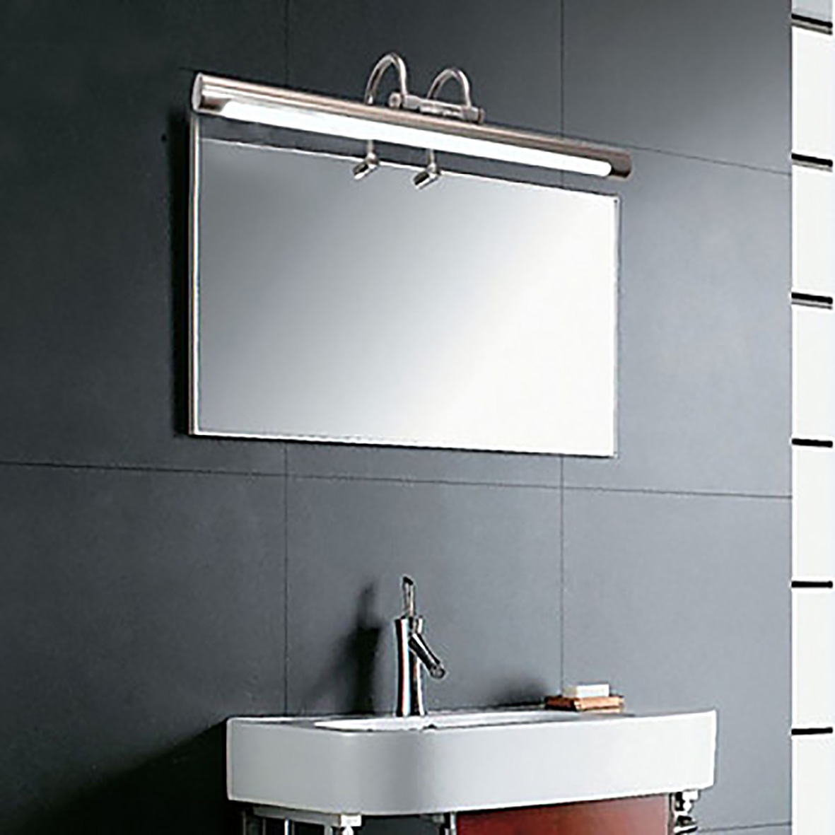 Applique LED tubolare dal design discreto e semplice. Con un grado di protezione IP44, è l'ideale per illuminare il tuo bagno, soprattutto posizionato sopra uno specchio o un oggetto da evidenziare. Ti dà una bellissima intensità luminosa di 1200 luci per una potenza di soli 12 Watt. Disponibile nei colori bianco caldo e bianco neutro, questa lampada da parete offre una luminosità adeguata e appropriata se ti stai radendo, truccando o acconciando i capelli.