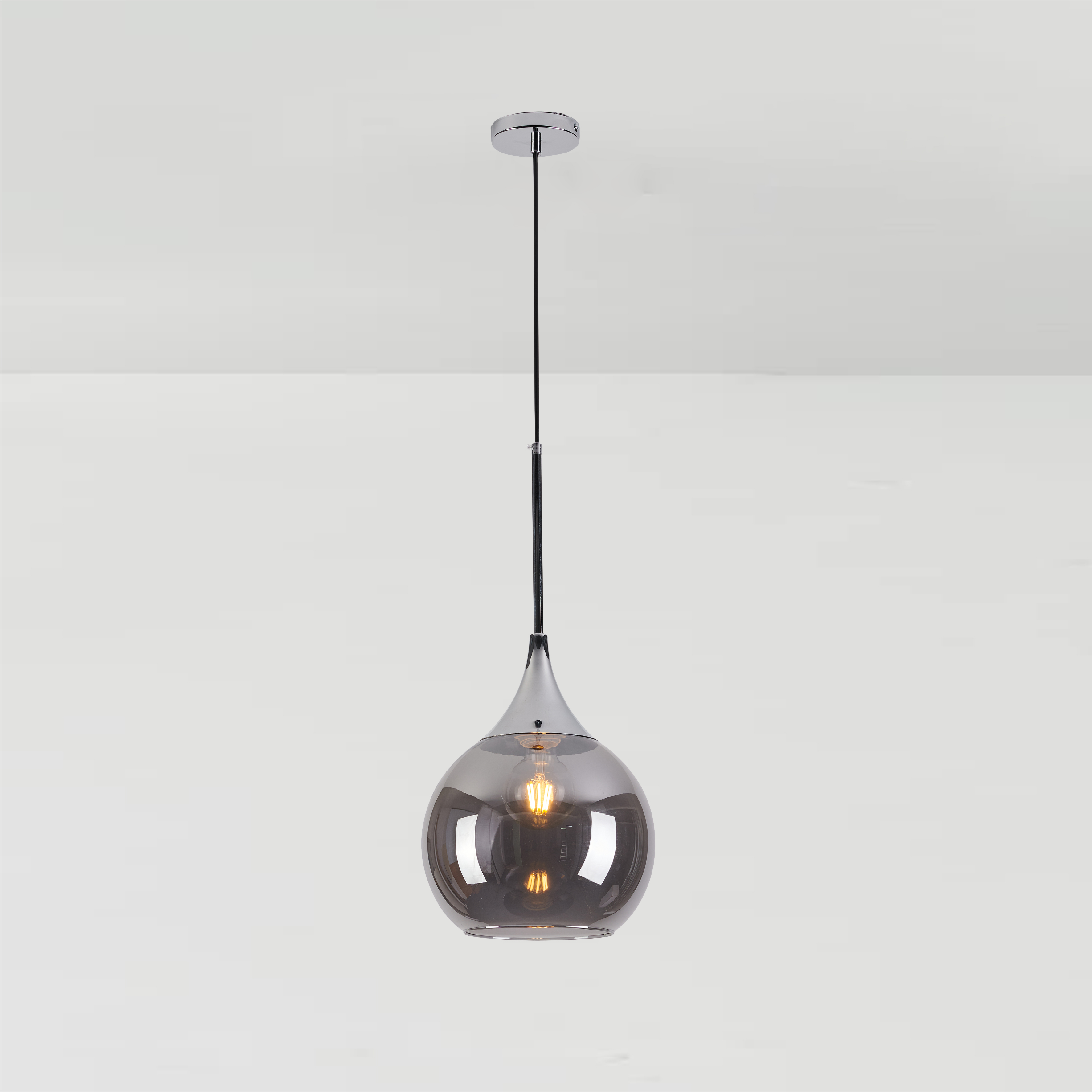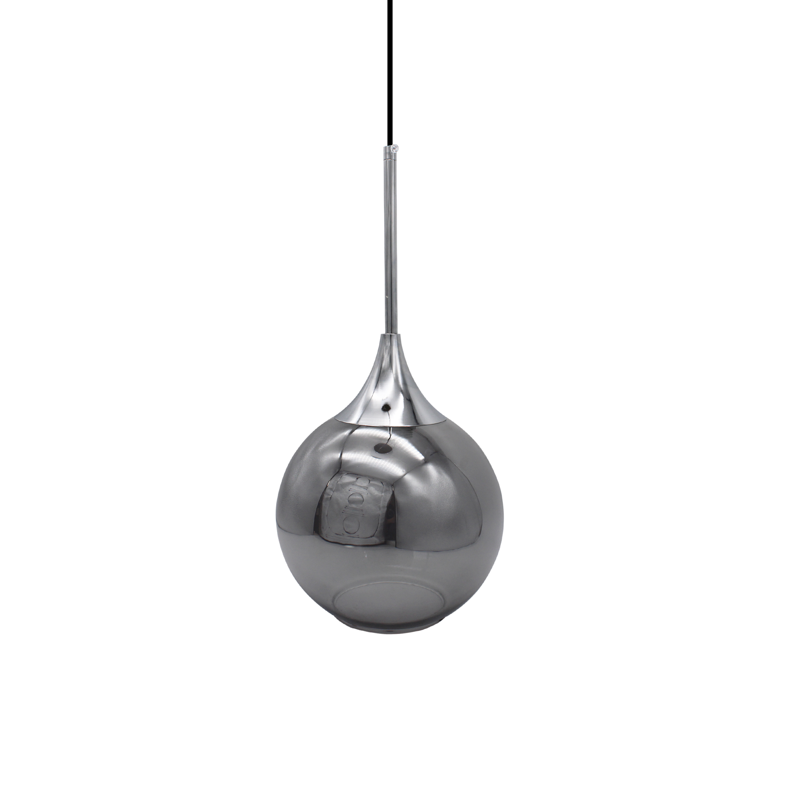 Lampada a sospensione singola a LED  in stile elegante e moderno di forma sferica in vetro specchio fumè.